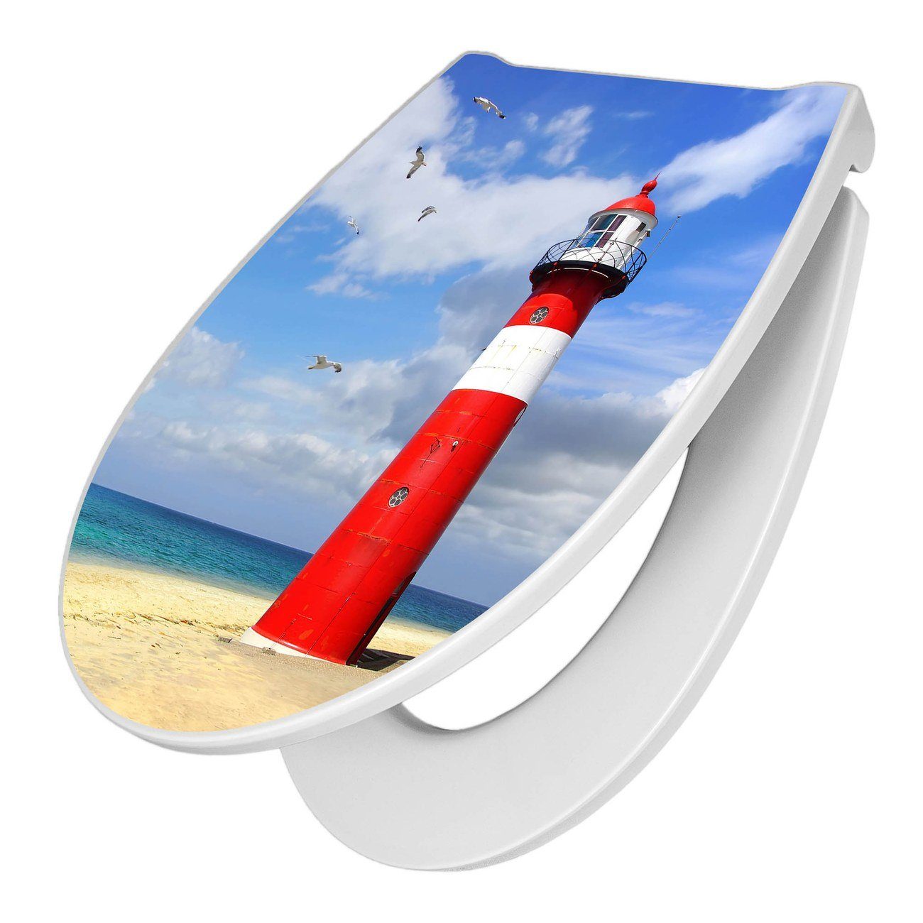 banjado WC-Sitz Motiv Leuchtturm Westkapelle (umweltfreundliches Material & Take-Off Technologie, Softclose Absenkautomatik), 45 x 38,4 x 4,2cm