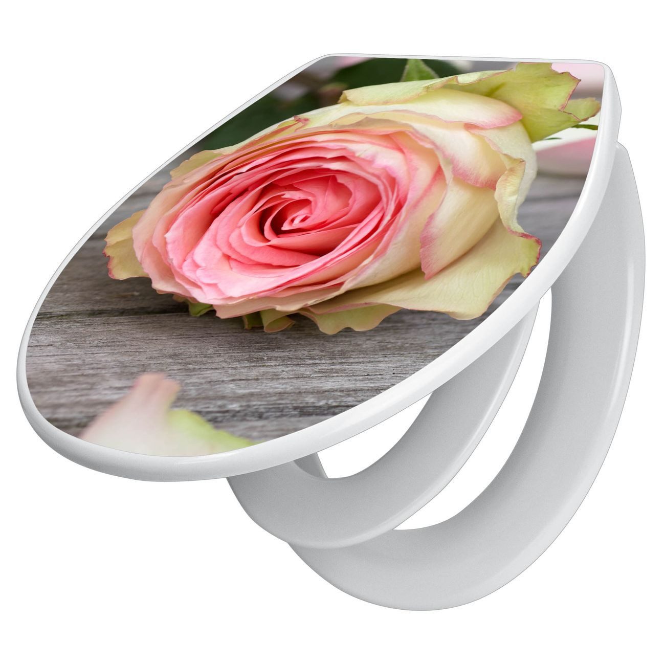 banjado WC-Sitz Motiv Rosa Rose (mit Kindersitz, integrierte Scharniere), ‎44 x 37 x 5cm
