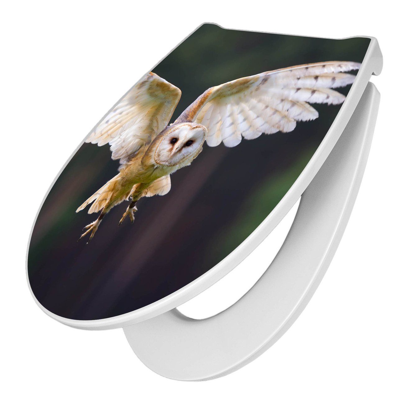 banjado WC-Sitz Motiv Schleiereule (umweltfreundliches Material & Take-Off Technologie, Softclose Absenkautomatik), 45 x 38,4 x 4,2cm