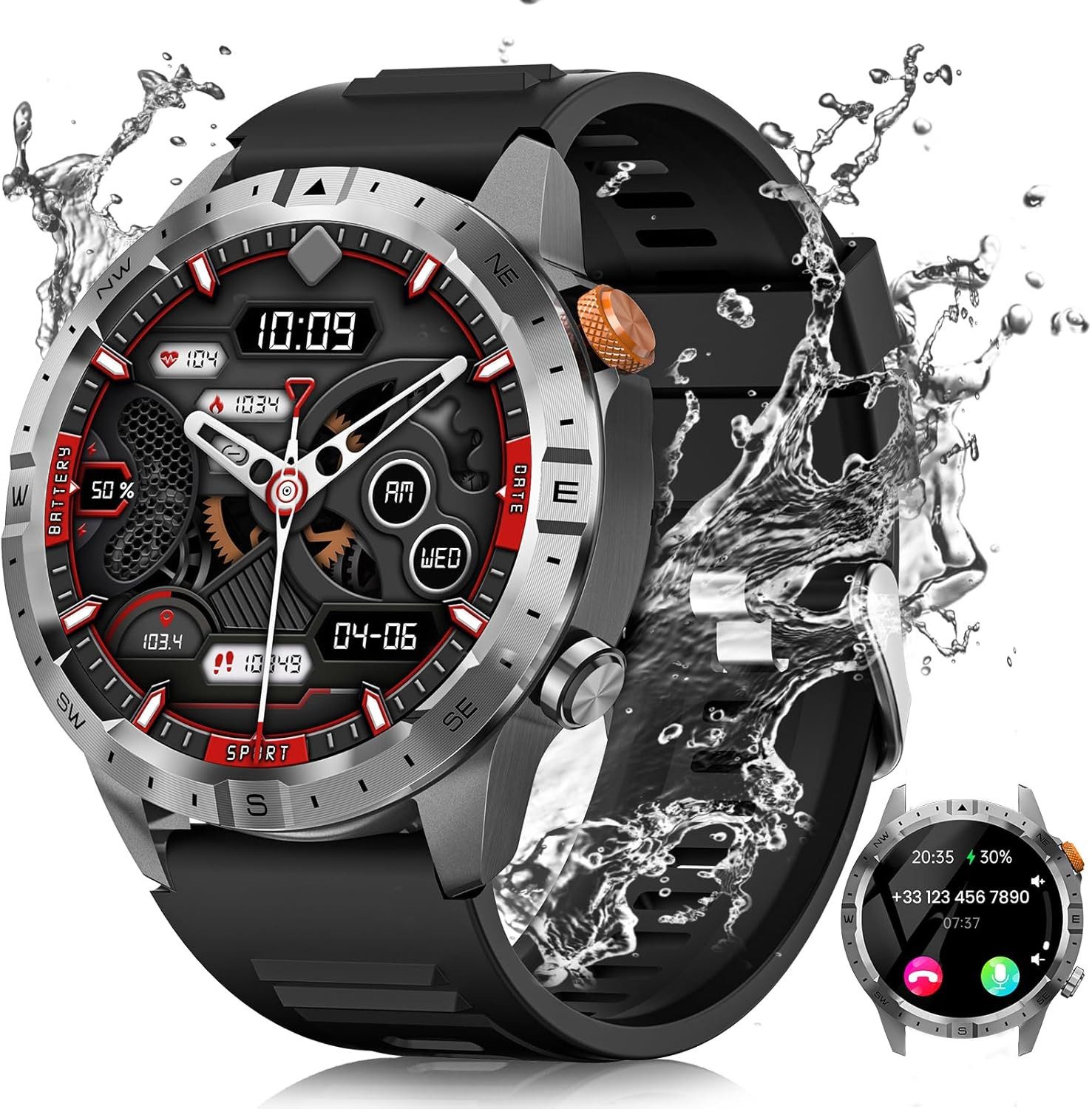 Smartwatch Herren mit Telefonfunktion, 1,43" AMOLED Always-On Display, 70+ Sportmodi Armbanduhr mit Herzfrequenz, SpO2 Schlafmonitor, IP68 Wasserdicht Fitnessuhr Smart Watch Android iOS