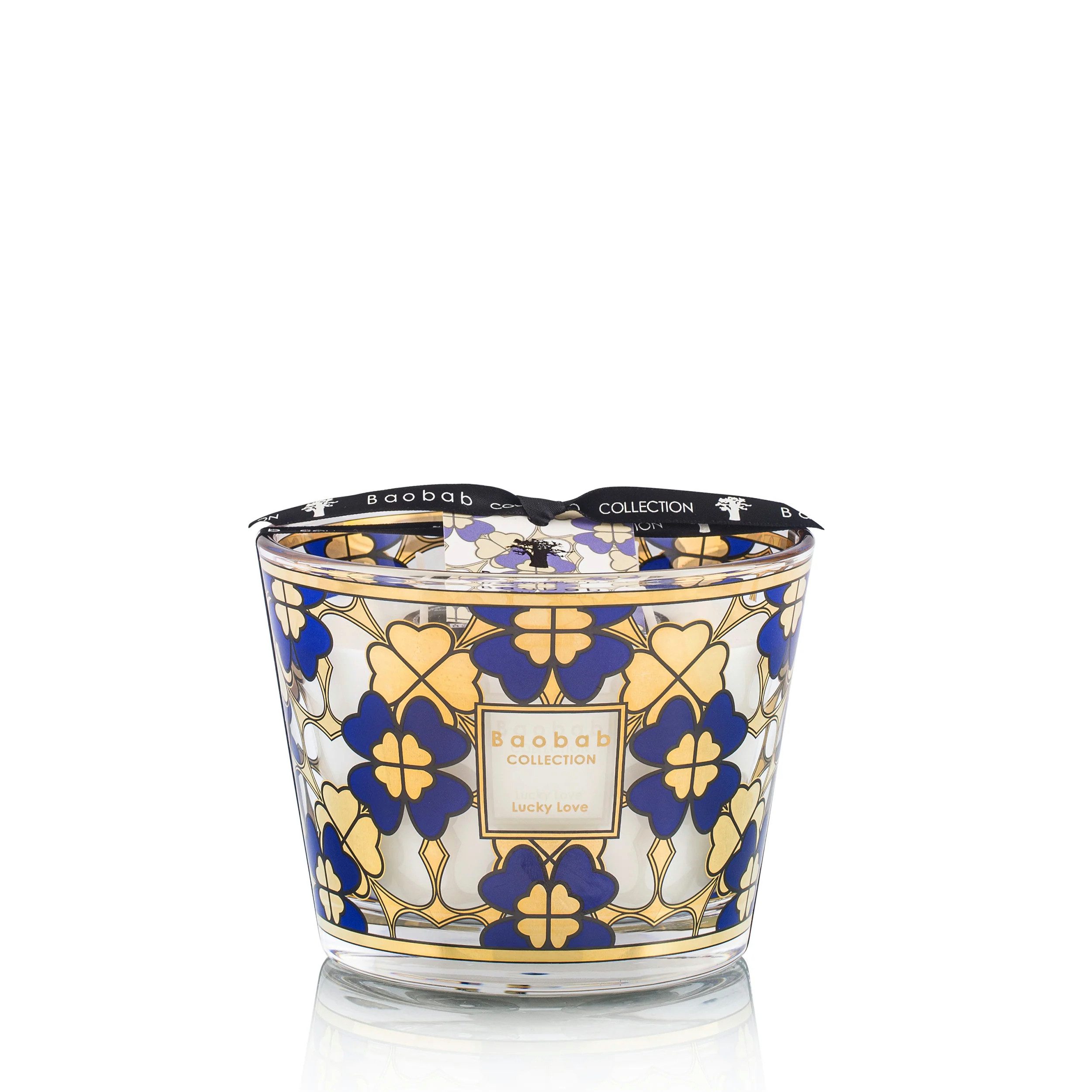 Die Baobab Duftkerze Lucky Love ist der perfekte Begleiter für Ihr Zuhause, wenn Sie auf der Suche nach hochwertiger Dekoration und einem unverwechselbaren Duft sind. Diese luxuriöse Duftkerze vereint edles Design und eine einzigartige Duftkomposition, die Ihr Zuhause in eine Oase des Wohlbefindens verwandelt. Inspiriert von einem Vintage-Schmuckstück aus den 60er Jahren, präsentiert sich die Kerze in einem eleganten Mitternachtsblau und einem Siebdruck aus 24-Karat-Gold. Kleine Herzen bilden ein vierblättriges Kleeblatt – ein Symbol für Liebe und Glück, das diese Duftkerze zu einem echten Highlight in Ihrem Raum macht.