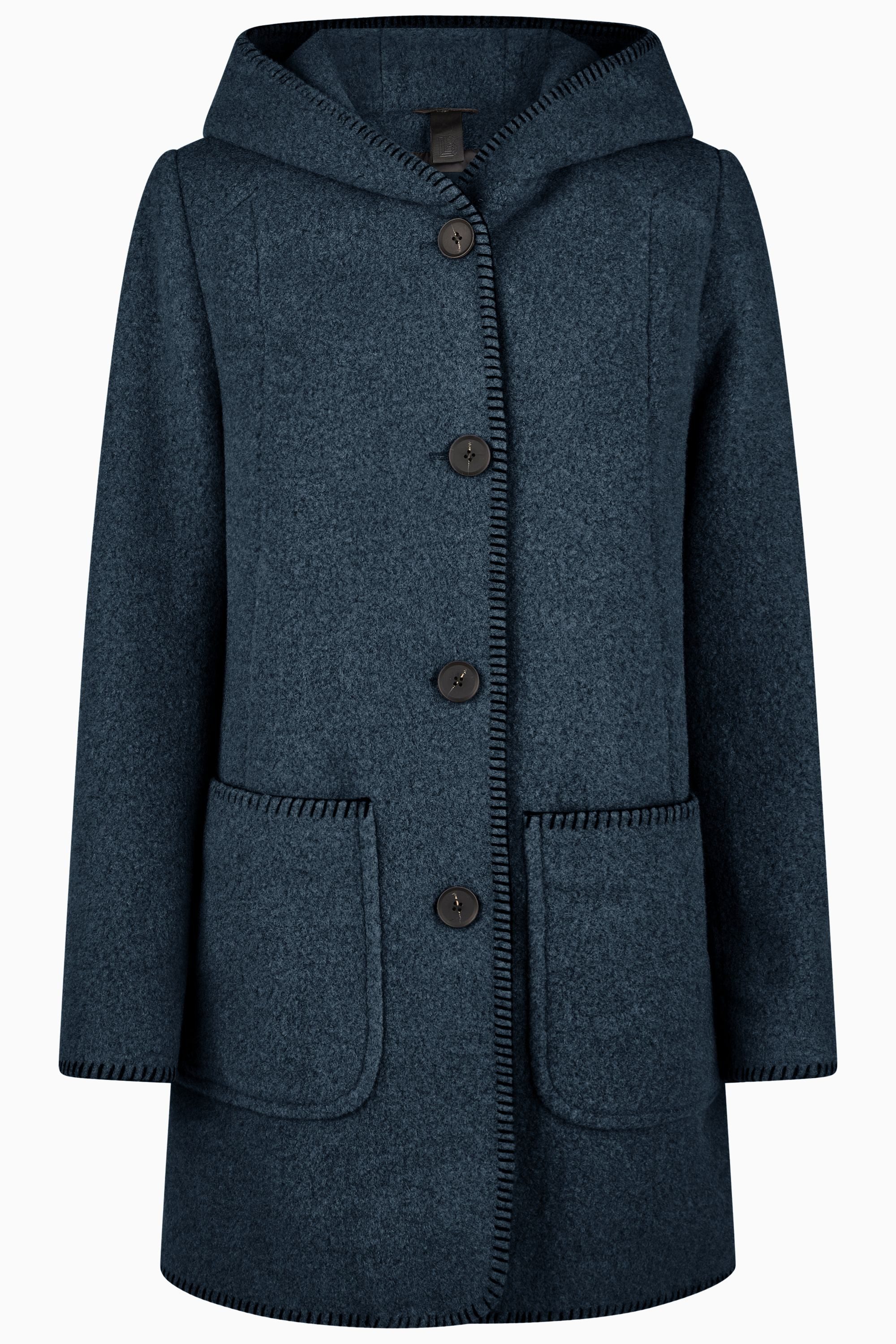 Wärme & Schutz im AlltagDie angenähte Kapuze schützt zuverlässig vor Wind, während das hochwertige Wollmaterial angenehm warmhält. Dank der modernen Druckknopfleiste lässt sich die Jacke bequem öffnen und schließen ganz ohne sichtbaren Reißverschluss.