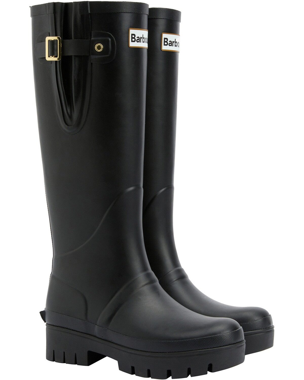 Die Damen Gummistiefel Leighton von Barbour sind die perfekte Kombination aus Funktionalität und modernem Stil. Diese hohen Gummistiefel zeichnen sich durch einen verstellbaren Schaft aus, der eine individuelle Anpassung und optimalen Komfort bietet. Die robuste, profilierte Sohle sorgt für hervorragende Trittsicherheit und Stabilität, egal ob beim Spaziergang im Park oder bei Ausflügen in der Natur. Ein Barbour-Logo-Patch an der Schaftvorderseite verleiht den Stiefeln einen charakteristischen Akzent und unterstreicht die Qualität der Marke. Ob in Kombination mit einer Wachsjacke oder einem schicken Regenmantel – diese Stiefel sind ein vielseitiges Must-have für jede Garderobe im British Style. Pflegehinweis: Nach dem Tragen sollten Schmutz und Schlamm mit einer weichen Bürste oder einem Tuch entfernt und die Stiefel mit Wasser oder einem speziellen Gummistiefelreiniger gereinigt werden. Lassen Sie die Stiefel natürlich trocknen, fern von direkten Wärmequellen, die das Gummi austrocknen könnten. Gelegentlich sollten Sie das Gummi mit einem Gummipflegemittel behandeln, um Rissbildung und Spaltungen zu vermeiden. Oberstoff: 100% Gummi; Futter: 100% Polyester