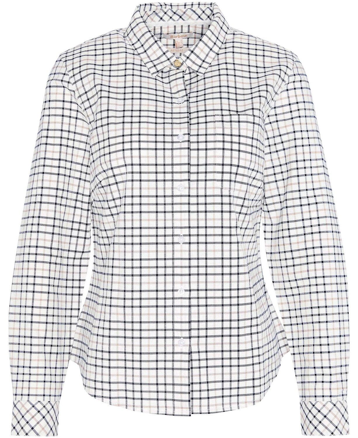 Eleganz trifft auf Komfort mit der Barbour Bluse Woodside Im Kleiderschrank moderner Fans klassischer Mode darf die karierte Barbour Bluse Woodside nicht fehlen. Dieses taillierte Karohemd kombiniert stilvolles Design mit Praktikabilität. Aus Baumwollstretch gefertigt, bietet es einen hervorragenden Tragekomfort und eine perfekte Passform, die der Figur schmeichelt. Besonderheiten wie die aufgesetzte Tasche und die gebrandeten Perlmuttknöpfe heben dieses Stück von herkömmlichen Blusen ab. Qualität bis ins letzte Detail für den Alltag Nicht nur das ansprechende Äußere, sondern auch die Qualität der Verarbeitung machen die Barbour Bluse Woodside zu etwas Besonderem. Gebrandete Perlmuttknöpfe zieren sowohl die vordere Knopfleiste als auch die Manschetten und verleihen dem Hemd einen Hauch von Luxus. Ein Markenknopf am oberen Nacken sowie eine dezente ID-Bar im Nacken runden das durchdachte Design ab. Zusätzlich sorgt die einfache Pflege mit Maschinenwäsche bei 30 °C für eine lang anhaltende Freude am Produkt, ohne dass man auf Qualität oder Aussehen verzichten muss. Oberstoff: 97% Baumwolle, 3% Elasthan
