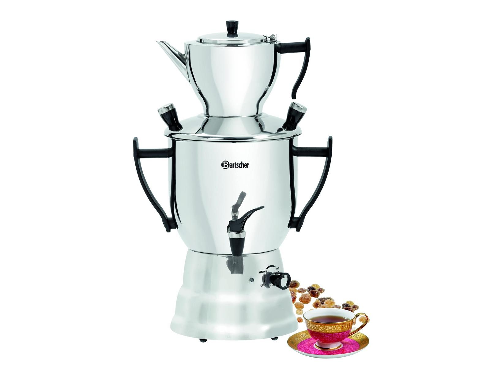 Tee-Tradition mit besonderem Charme. Mit nur einer Wärmequelle bereitet der Samowar beliebig lang stetig heißes Wasser und hält gleichzeitig den frischen Tee heiß.