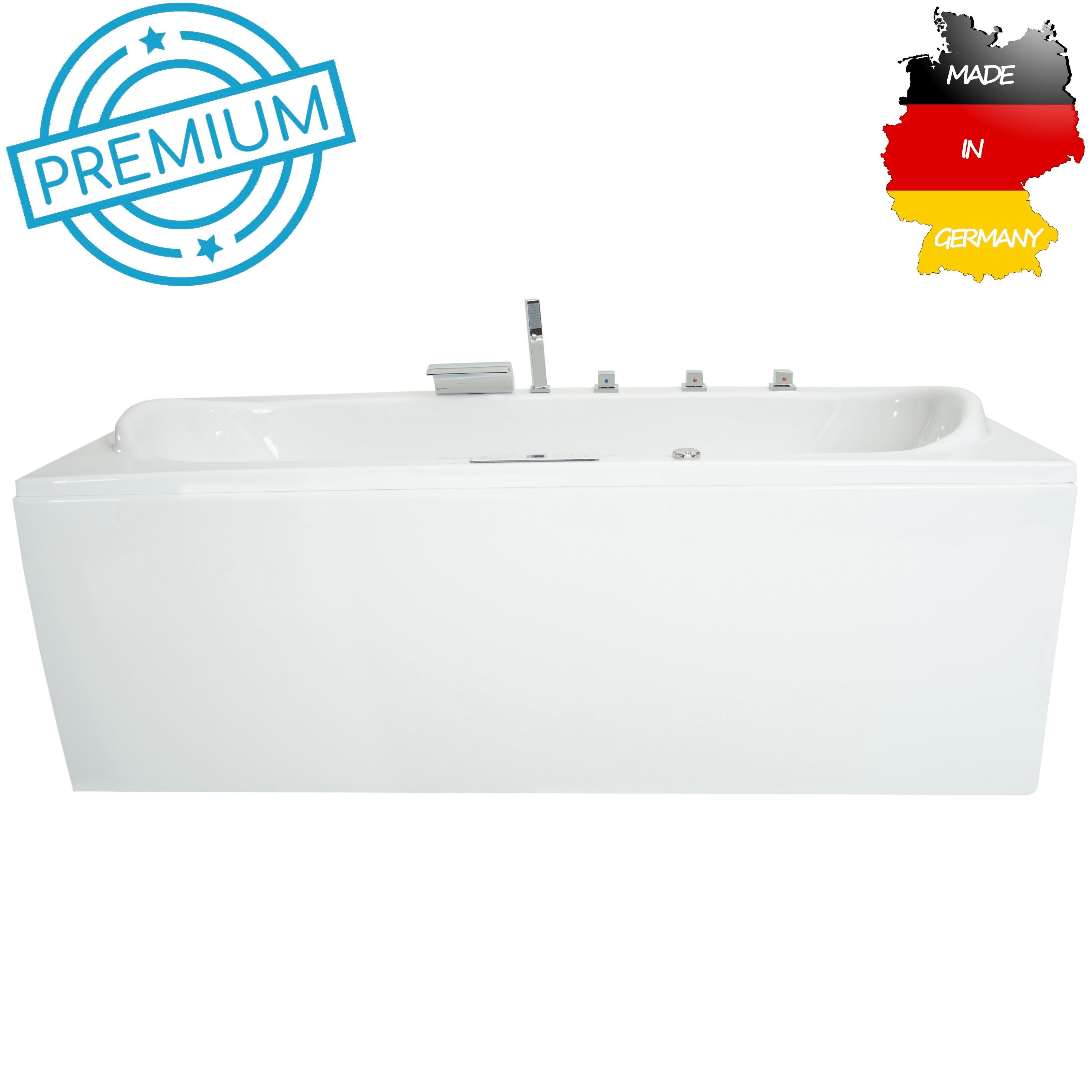 Dank der 1000 Watt Power Heizung vom Markenhersteller dhW mit 220V/50HZ wird es nie kalt. Sobald die Massagedüsen eingeschaltet sind, wird das Wasser auch bei einem längeren Badegang warm gehalten. Der Whirlpool besteht aus hochwertigem reinem Sanitäracryl. Dieses Qualitätsmerkmal sorgt für eine optimale Wärmespeicherung sowie für ein angenehmes, warmes Hautgefühl beim Einsteigen in die Badewanne. Darüber hinaus wird im Laminierverfahren eine Glasfaserverstärkung auf die Außenseite der Wanne aufgetragen. Einzeln höhenverstellbare Füße schaffen einen Bodenausgleich von bis zu 10 cm. Das Fußgestell ist aus massivem rostfreiem Stahl und alle Eisenkleinteile sind von der deutschen Qualitätsmarke Würth.