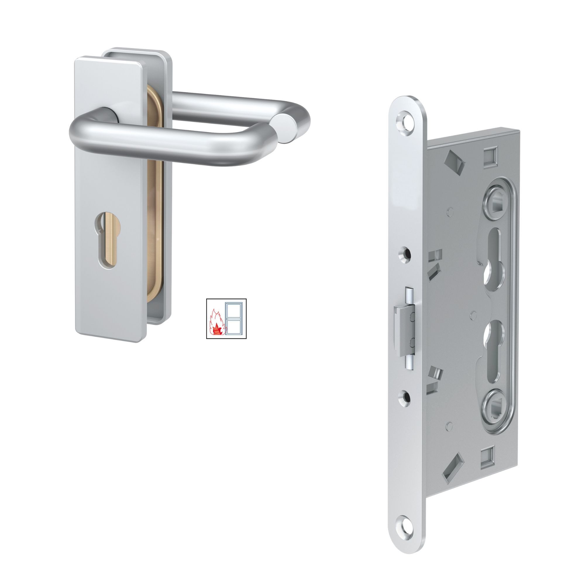 Wahlweise Set aus Drückerbeschlag und Einsteckschloss, oder auch als Komplett-Set mit Zylinder erhältlich - ideal für die Verwendung an FH-Türen