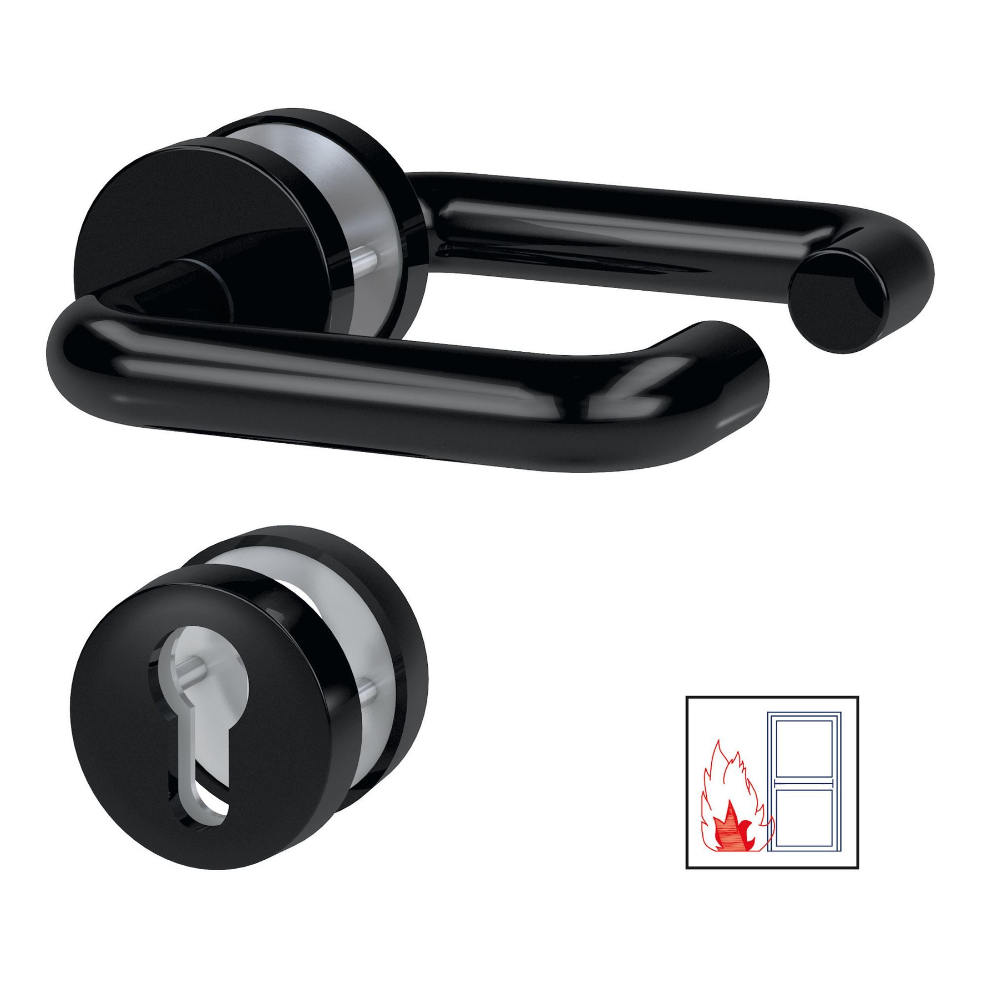 BASI Türbeschlag Rosetten-Garnitur (Packung), Feuerschutzbeschlag PZ, Drückergarnitur, Kunststoff schwarz, 40-66 mm
