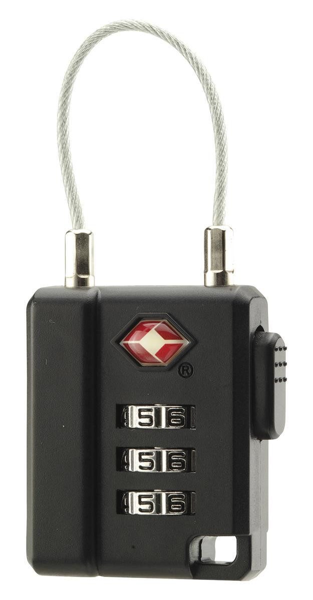 Kleines und sehr pfiffiges Zahlenschloss mit drei Stellen und frei wählbarer Zahlenkombination. Das Schloss ist ideal um z. B. Reißverschlüsse zusammen zu verschließen. Dies ist bei Gepäck, Rucksäcken oder Fotoequipment von Vorteil. Die Transportation Security Administration (TSA) kann diese Schlösser bei Bedarf öffnen, ohne sie zu zerstören. So kann den Vorschriften entsprechend Gepäck in die USA zur Kontrolle geöffnet werden, ohne Schloss oder Gepäck zu beschädigen. Die TSA hat einen Generalschlüssel. Am Schloss erkennt man die stattgefundene Untersuchung durch einen roten Rand am Schloss.