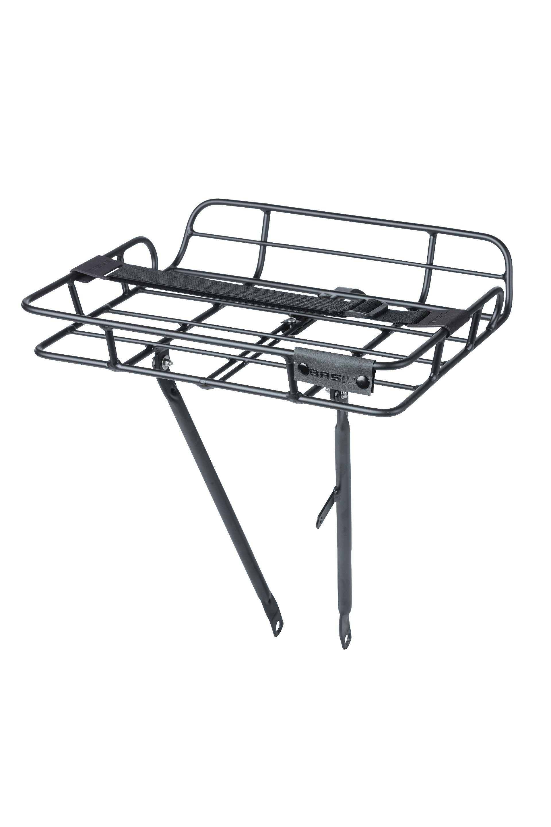 Der Basil Portland Front Carrier ist ein stilvoller Vorderradgepäckträger, gefertigt aus Aluminium. Der Vorderradgepäckträger fällt durch seine Vintage-Optik auf und verfügt über einen rundherum aufgerichteten Rand. Damit wird verhindert, dass im Falle des Falles all deine Sachen auf Straße landen. Die maximale Tragekraft des Vorderradgepäckträgers beträgt 10 Kilogramm. Er passt auf Fahrräder mit einem Rahmen zwischen 26 und 28 Inch und wird am Steuerkopf montiert. Zusätzliche Unterstützung wird durch die Gabelstreben geboten (für 12-13 mm Achsen).