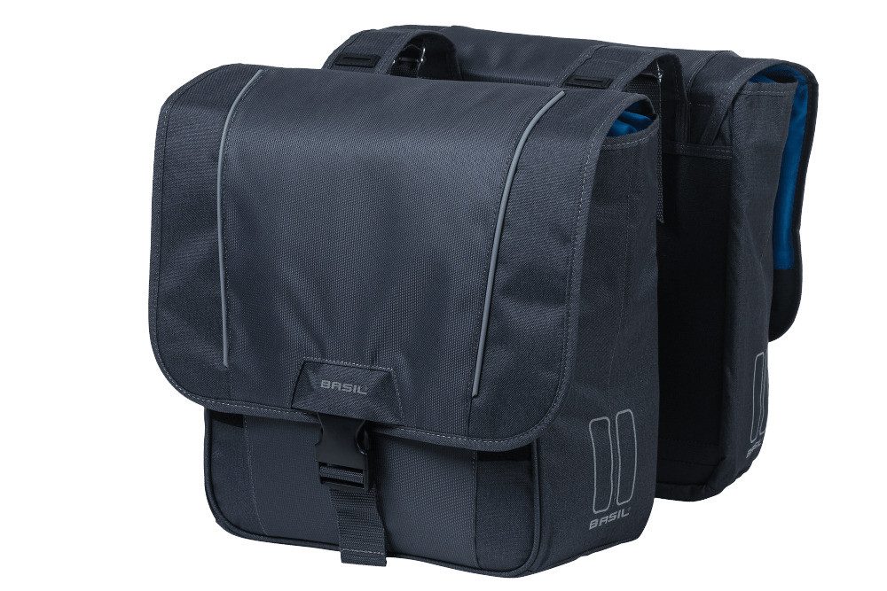 Die Basil Sport Design Double Bag ist eine doppelte Fahrradtasche, die sich mit Hilfe des Universal Bridge-Systems am Gepäckträger eines Damen- oder Herrenfahrrads befestigen lässt. Die doppelte Tasche hat einen großen Inhalt von 32 Litern. Daher ist sie besonders praktisch für alle, die gerne mit dem Fahrrad zum Supermarkt fahren. Darin lassen sich nämlich eine Menge Einkäufe verstauen. Und somit ist es auch nicht mehr nötigt Ihre Einkaufstaschen an Ihren Lenker zu hängen oder auf Ihren Schultern zu transportieren. Der Sport Design Double Bag ist unter anderem mit einem elastischen Flaschenband ausgestattet, das dafür sorgt, dass Ihre Flasche gerade in Ihrer Tasche stehen bleibt. Damit vermeiden Sie ein nasses oder klebriges Schlamassel in Ihrer Fahrradtasche. Die Taschen verfügen ebenfalls über reflektierendes Material, wodurch man auch in der Abenddämmerung und abends gut auf den Straßen sichtbar ist. Ein zusätzlicher Vorteil ist, dass sie aus wasserabweisendem Polyester gefertigt sind. Wenn Sie also durch einen lästigen Regenschauer überrascht werden, bleiben zumindest Ihre Sachen trocken. Mit Hilfe von Riemen lassen sich die Taschen leicht am Gepäckträger Ihres Fahrrads befestigen. Dank des Universal Bridge-Systems eignet sich die Tasche auch für diverse Systeme, wie zum Beispiel MIK und Racktime (Adapterplatte nicht enthalten).