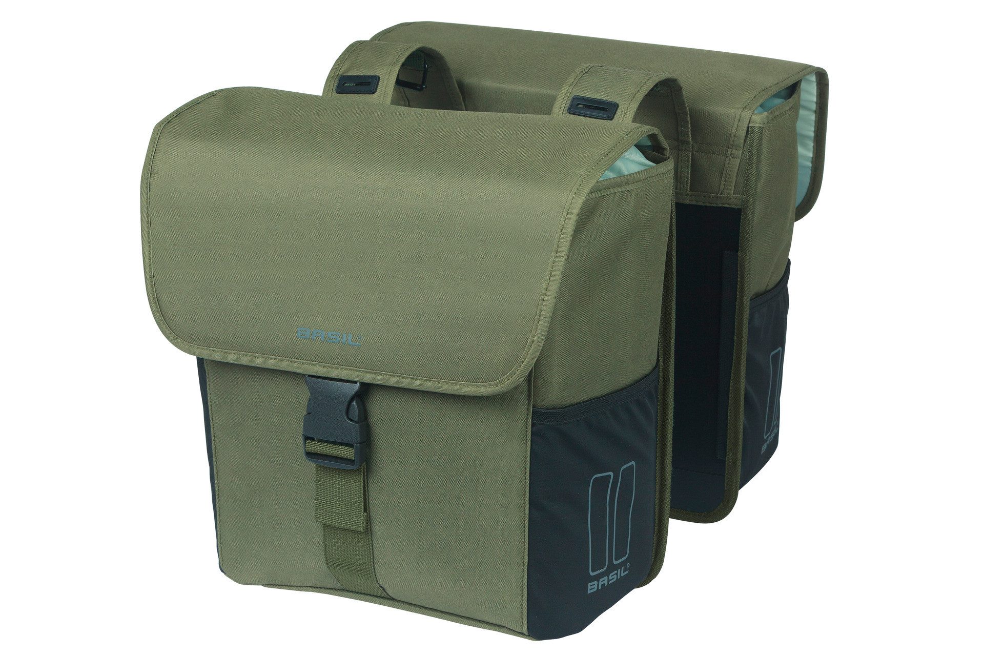 Die Basil GO Double Bag ist eine doppelte Fahrradtasche für den Gepäckträger, perfekt für Menschen, die viel mit dem Fahrrad unterwegs sind. Eine Fahrradfahrt zum Supermarkt oder eine Fahrradtour zu Freunden, diese moderne Fahrradtasche macht deine Fahrradfahrt einfacher und schöner. Die Tasche ist abschließbar mit einem Kordelzug und Steckschnallen. Es sind zwei verstellbare Bänder vorhanden, womit Platz für Gepäckträgerspanngurte, einen Kindersitz, Federklappe oder Gepäckträger gegeben ist. Die elastischen Seitenfächer bieten Platz für eine Flasche Wasser oder (wenn nötig) einen Regenschirm. Die stabile Tasche ist aus hochwertigem Material gefertigt und hat einen Inhalt von etwa 32 Litern. So hat man unter allen Umständen genug Platz für Einkäufe, Sportkleidung oder andere Bedarfsgegenstände. Die Tasche ist leicht an deinen Gepäckträgern anzubringen (auch E-Bikes). Die Reflektordetails sorgen dafür, dass man besser sichtbar ist in Dunkelheit.