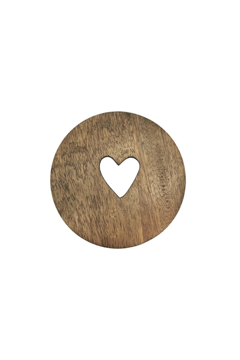 Geschmackvoller Holz-Untersetzer mit charmantem ausgeschnittenem Herzmotiv in der Mitte