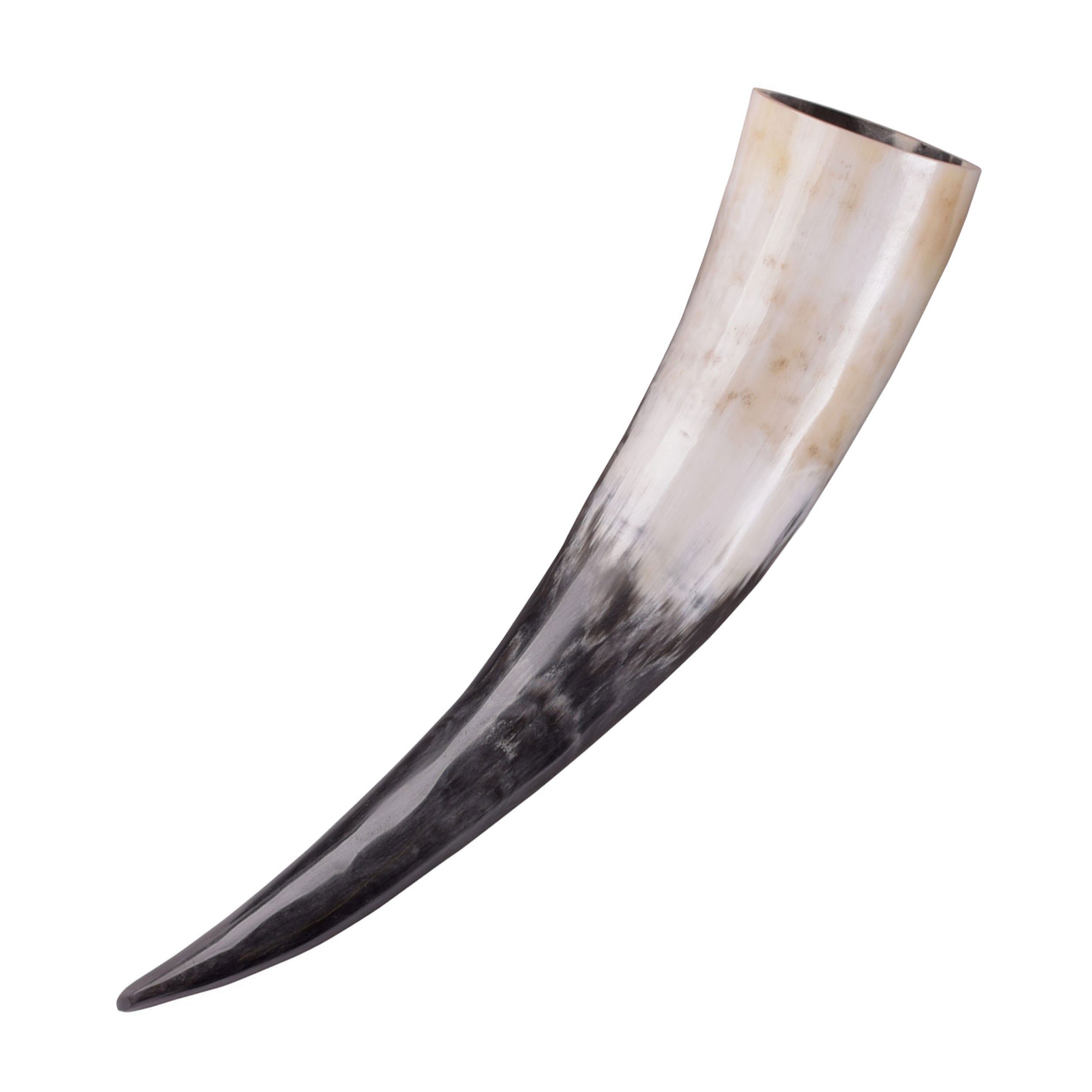 Unsere Hörner sind von außen glatt poliert, wohingegen die innere Seite lebensmittelecht lackiert ist. Dadurch lässt es sich einfacher abspülen. Dieses Horn hat ein Fassungsvermögen von 0,5l.