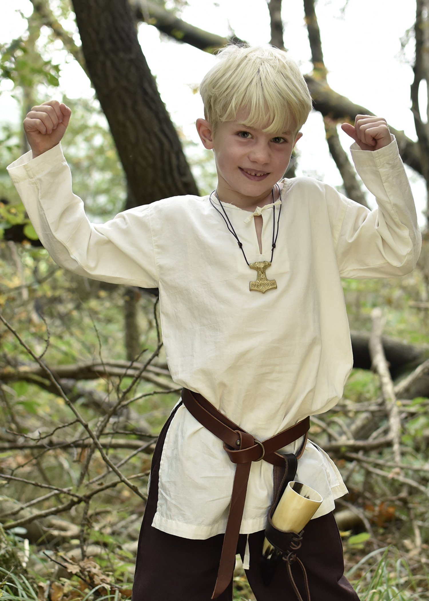 1x Langärmelige Mittelalter-Tunika / Leibhemd Arn für Kinder, natur