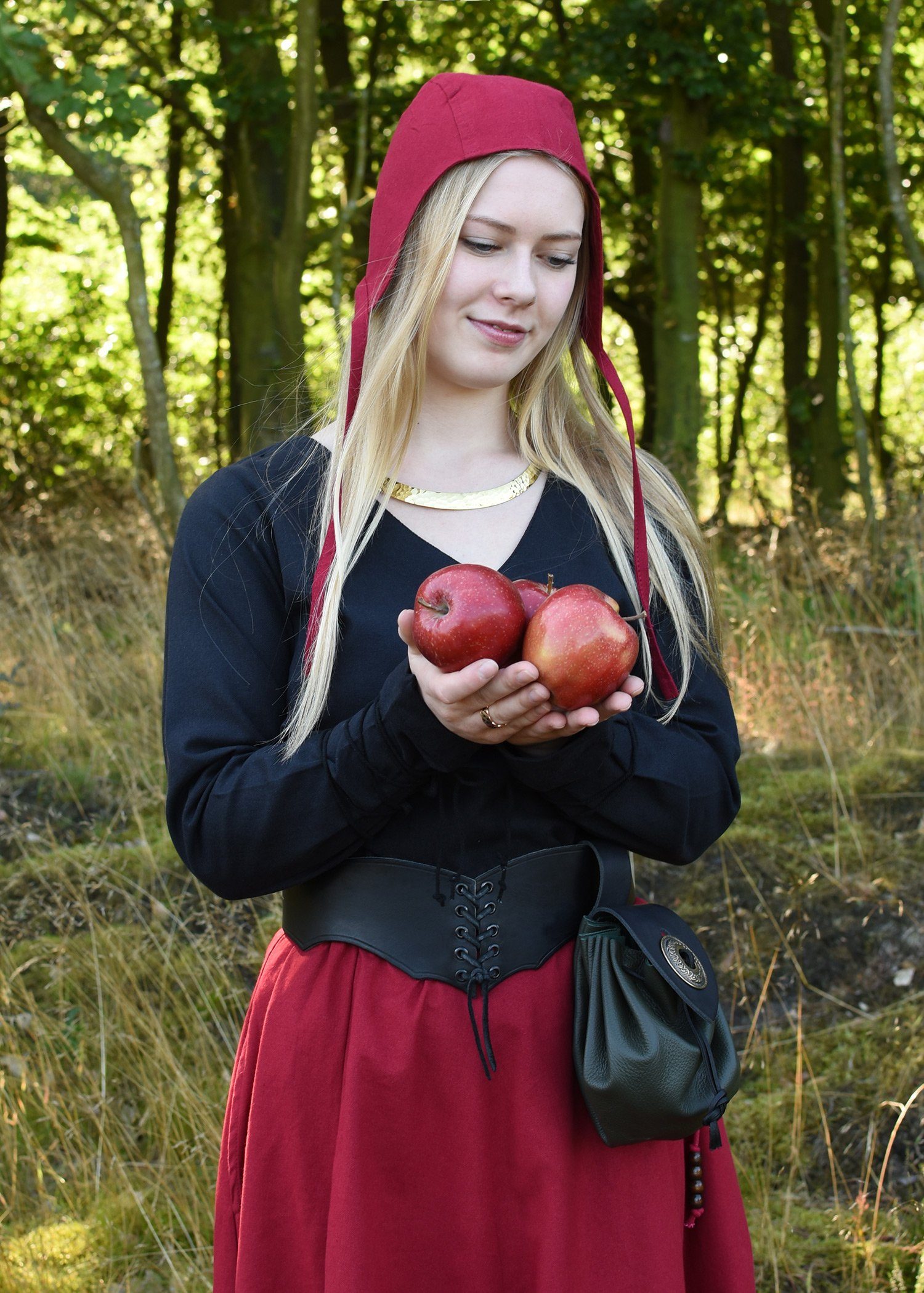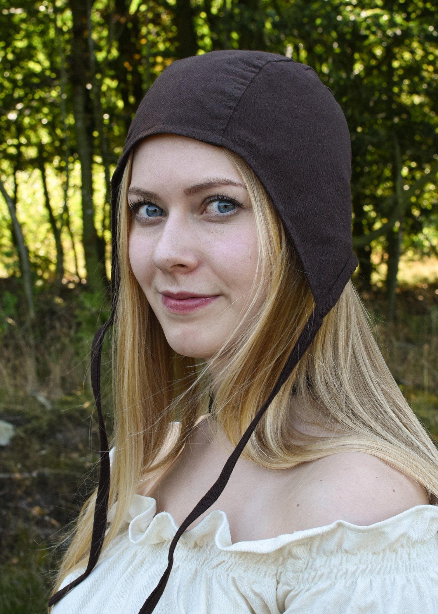 Die Bundhaube, auch Coiffe oder Coif genannt war ein Standard-Kleidungsstück des Mittelalters. Diese wurde aus Baumwollstoff gefertigt und mit einem leichten Baumwollstoff gefüttert. Die Bänder dienen zum Verschnüren unter dem Kinn. Die Bundhaube reicht bis knapp über die Ohren und bedeckt diese somit noch.