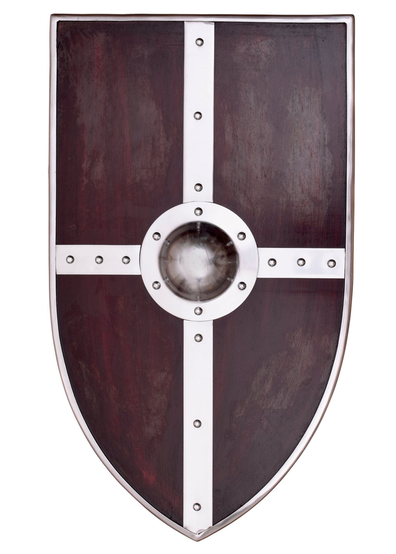 Schön gearbeiteter Schild mit Stahlbuckel und Stahlbeschlägen.