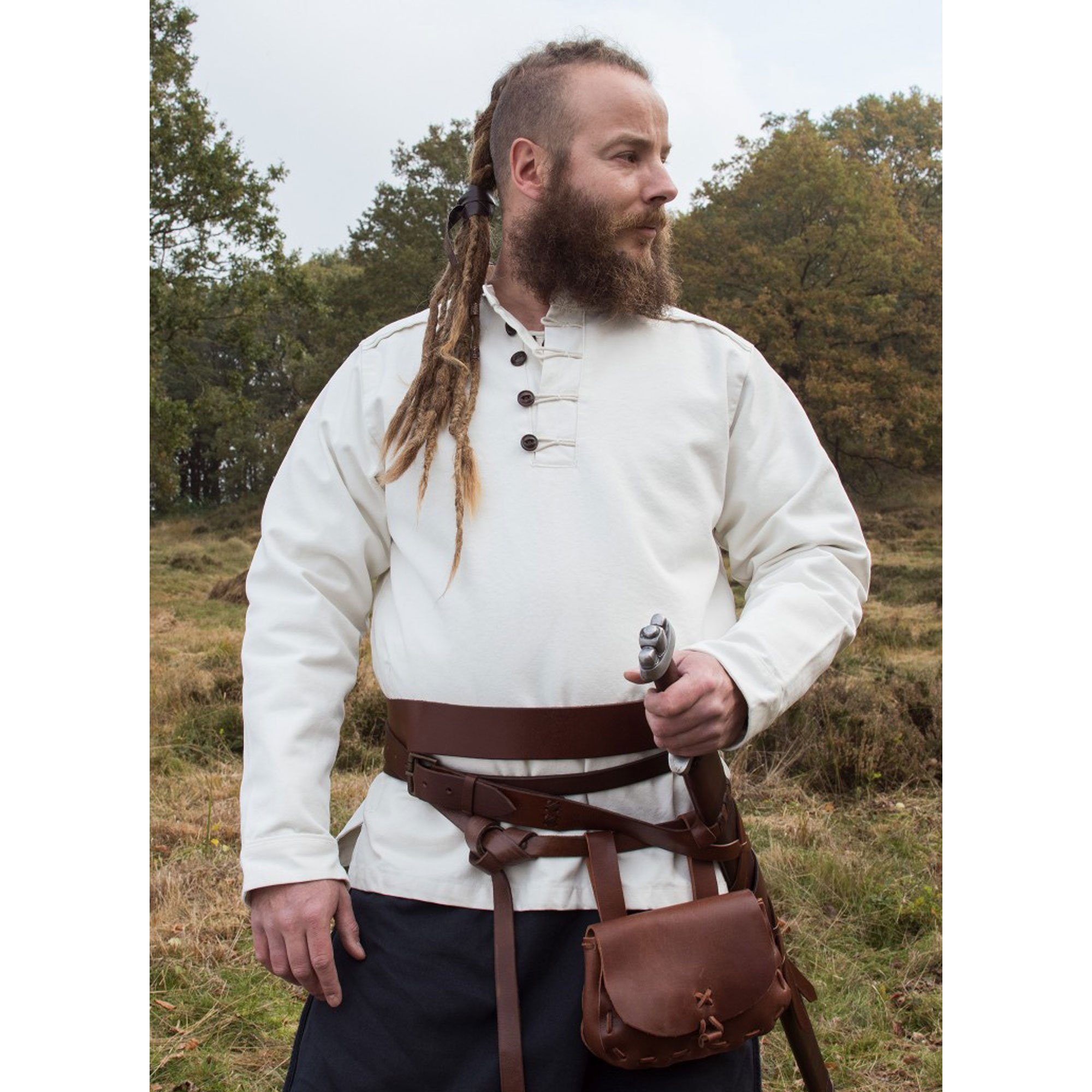 Das Mittelalterhemd entspricht einer freien Interpretation eines Handwerkerhemdes aus dem Mittelalter. Es eignet sich für die Darstellung einfacher Stände wie bspw. Bauern, Handwerker oder Fischer.