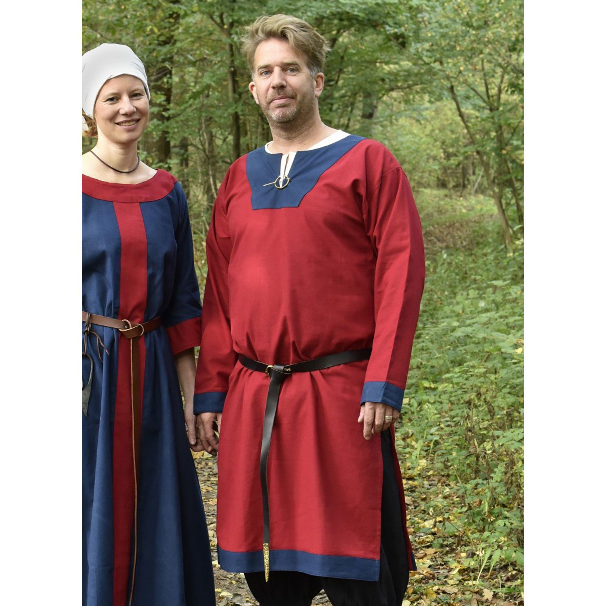 Lieferumfang: 1x Frühmittelalterliche Tunika aus Baumwolle, blau / rot