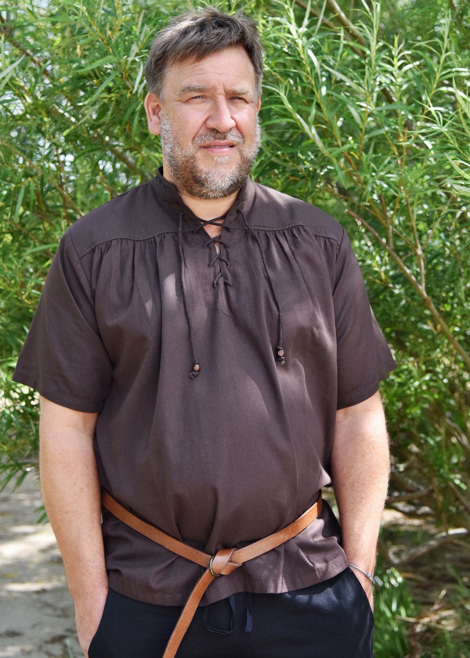 Details Mittelalterliches Hemd Braun, kurzarm: