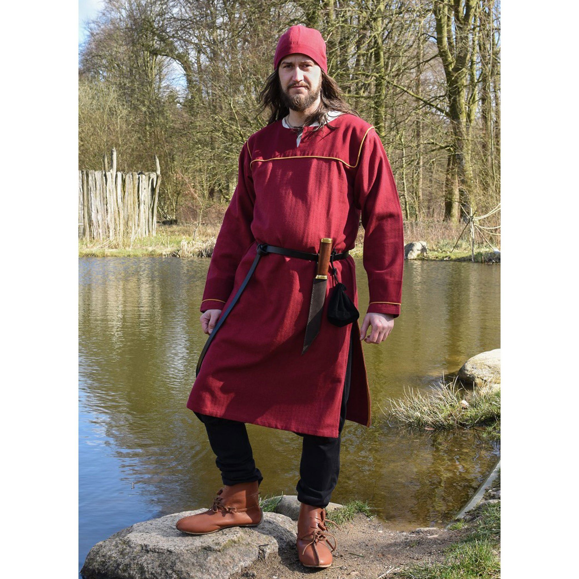 Lieferumfang: 1x Wikinger Tunika mit Fischgrätmuster aus Baumwolle, rot