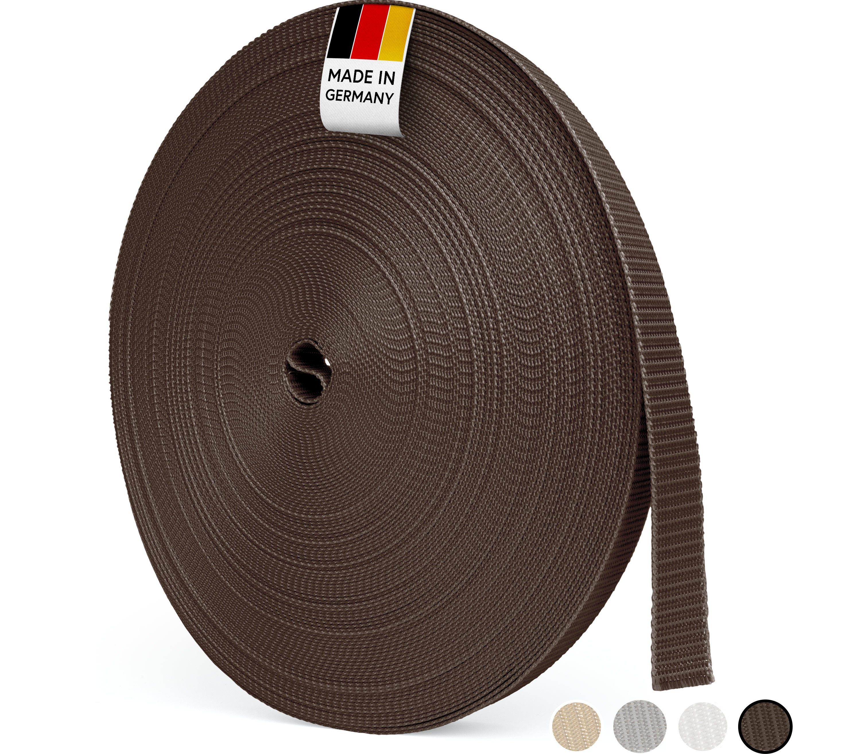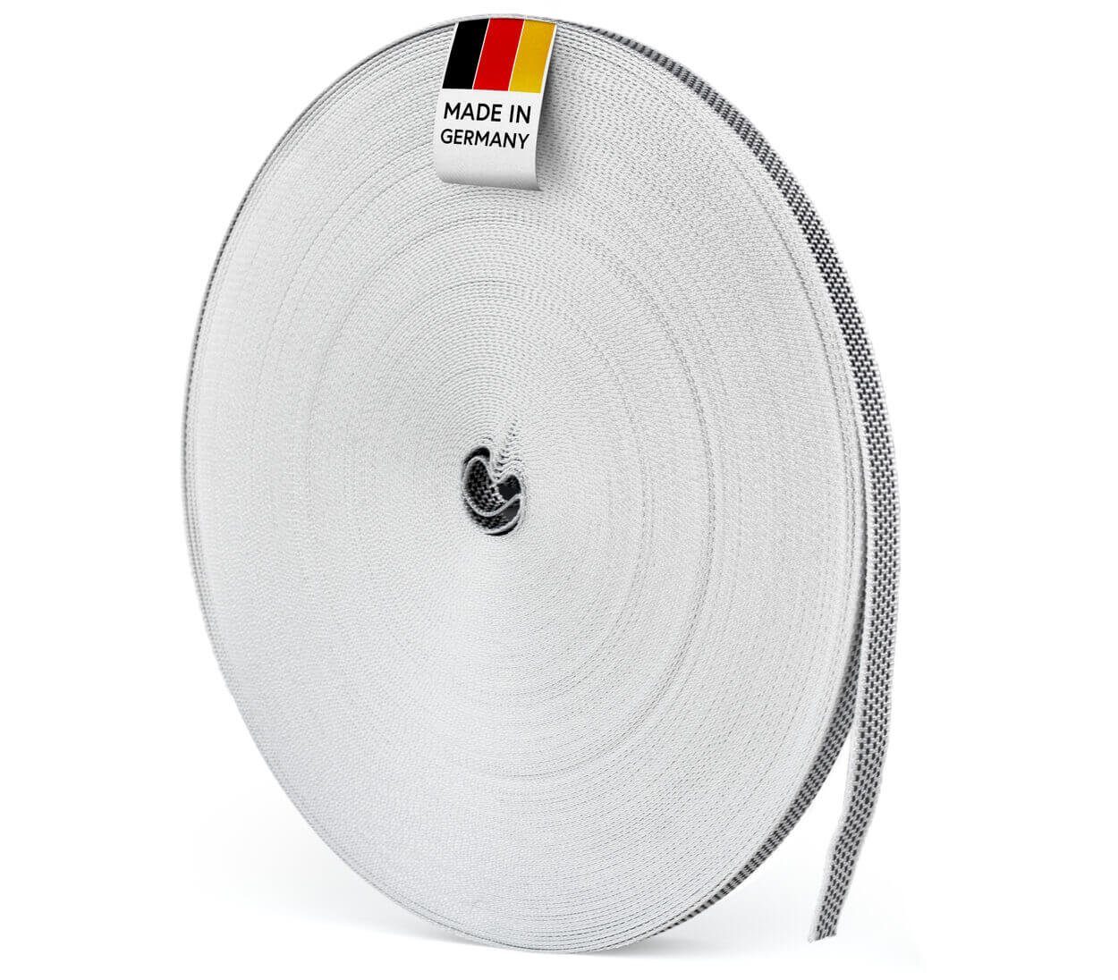 Hochwertiges Rollogurt *Made in Germany* zum Austausch, Erneuern oder als Zubehör für Rolladen, Rolladengurt-Antrieb, Jalousien und Aufschraubwickler. Mittels extra verstärkter Webkanten sind die Rolladengurte äußerst robust und zeichnen sich durch eine hohe Langlebigkeit aus. Das Rolloband ist schmutzunempfindlich und scheuerfest, kein Ausleiern und Verformen wie bei minderwertigen Gurten. UV- und witterungsbeständigkeit lässt das Rolladenband gegenüber herkömmlichem Gurt länger neuwertig aussehen.