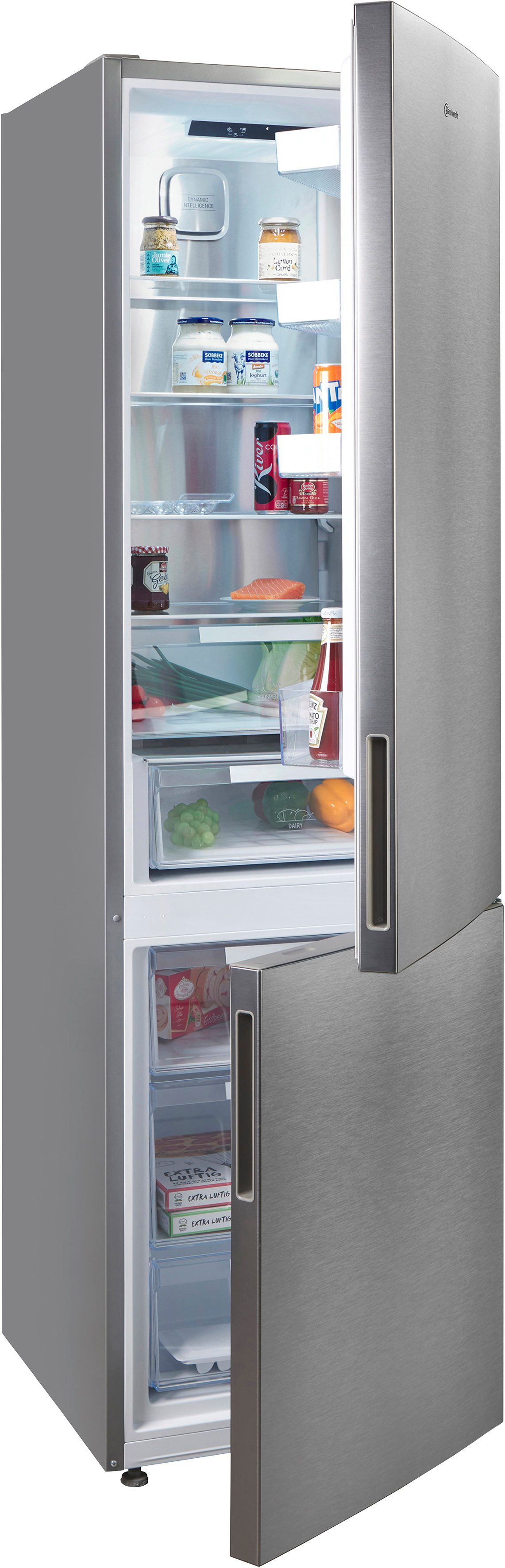 Die »KGDNF 203 A« ist eine freistehende Kühl- und Gefrierkombination von BAUKNECHT und überzeugt mit hoher Funktionalität sowie der Energieeffizienzklasse A (Skala Energieeffizienz-Klassifizierung A bis G). Bei einem Gefriervolumen von 106 l und Kühlvolumen von 249 l betragen die Maße des Modells 59,5 x 203,5 x 66,3 cm (B/H/T). Das Modell arbeitet mit einem Betriebsgeräusch von 32 dB. Eisbildung wird durch die No Frost-Funktion verhindert – so muss das Gerät nie wieder abgetaut werden. Drei Gefrierschubladen stehen zur Verfügung, um die Lebensmittel zu verstauen. Auf dem innen installierten Display kann die genaue Temperatur im Gerät abgelesen werden. Die vier Ablageflächen aus Sicherheitsglas, darunter drei höhenverstellbar, bieten viel Platz für Lebensmittel. Die vier Türablagen ermöglichen eine übersichtliche Aufbewahrung. Eine flexible Einstellung der Temperatur, perfekt abgestimmt auf den jeweiligen Inhalt, ist in der Multi-Temperatur-Zone durch flexibles Vergrößern des Gefrierraums möglich. Wenn die Tür zu lange offen steht oder eine Fehlfunktion vorliegt, macht die Kühl- und Gefrierkombination über ein akustisches Warnsignal darauf aufmerksam. Всеs im Blick hat man außerdem dank der LED-Innenbeleuchtung. Für diejenigen, die auf der Suche nach einer Kühl- und Gefrierkombination sind, ist die »KGDNF 203 A« von BAUKNECHT eine gute Wahl.