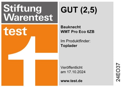 Das Onlineportal „test.de“ der „Stiftung Warentest“ testet den Bauknecht WMT Pro Eco 6ZB im Einzeltest. Die „gute“ Waschleistung überzeugt. Das Gerät besteht die Dauerprüfung mit der sehr soliden Note „2,7“. Es ist „befriedigend“ zu handhaben. Außerdem punkten die „guten“ Umwelteigenschaften: Das Modell verbraucht wenig Wasser und Energie und arbeitet leise. Der Toplader erreicht das Gesamtergebnis „GUT (2,5)“.