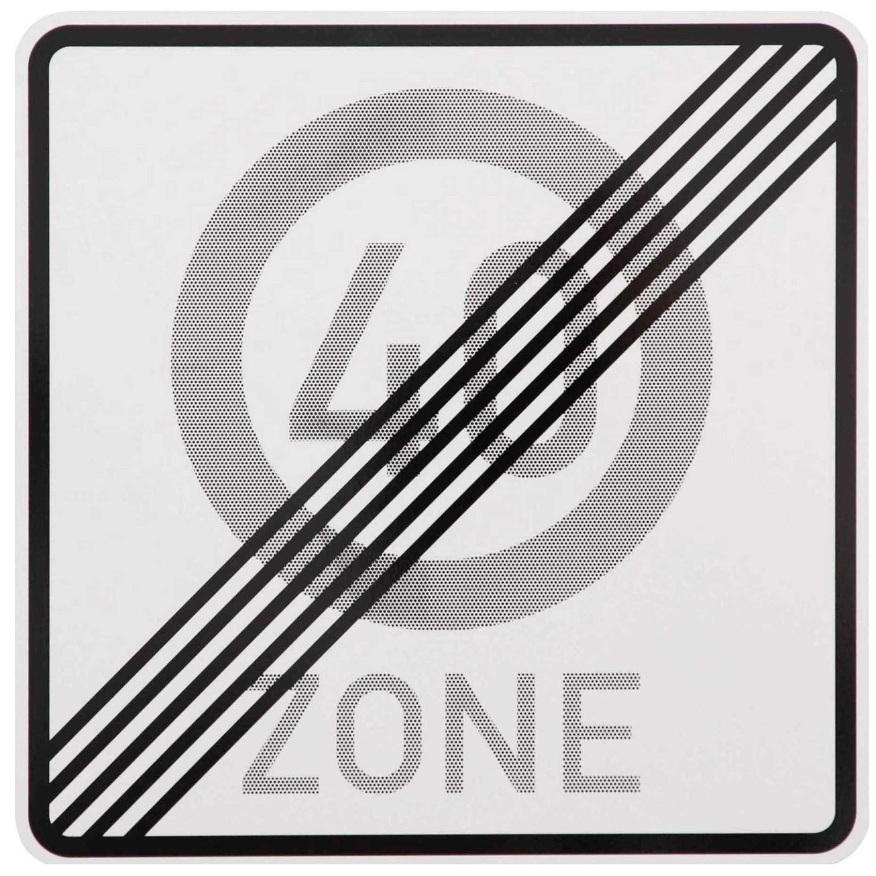 Das Ende einer Zone mit einer zulässigen Höchstgeschwindigkeit von 40 km/h bei einer Schildgröße von 420 x 420 mm gibt es nach StVO nicht! Dies ist ein zusätzlicher Sonder-Schriftzug!