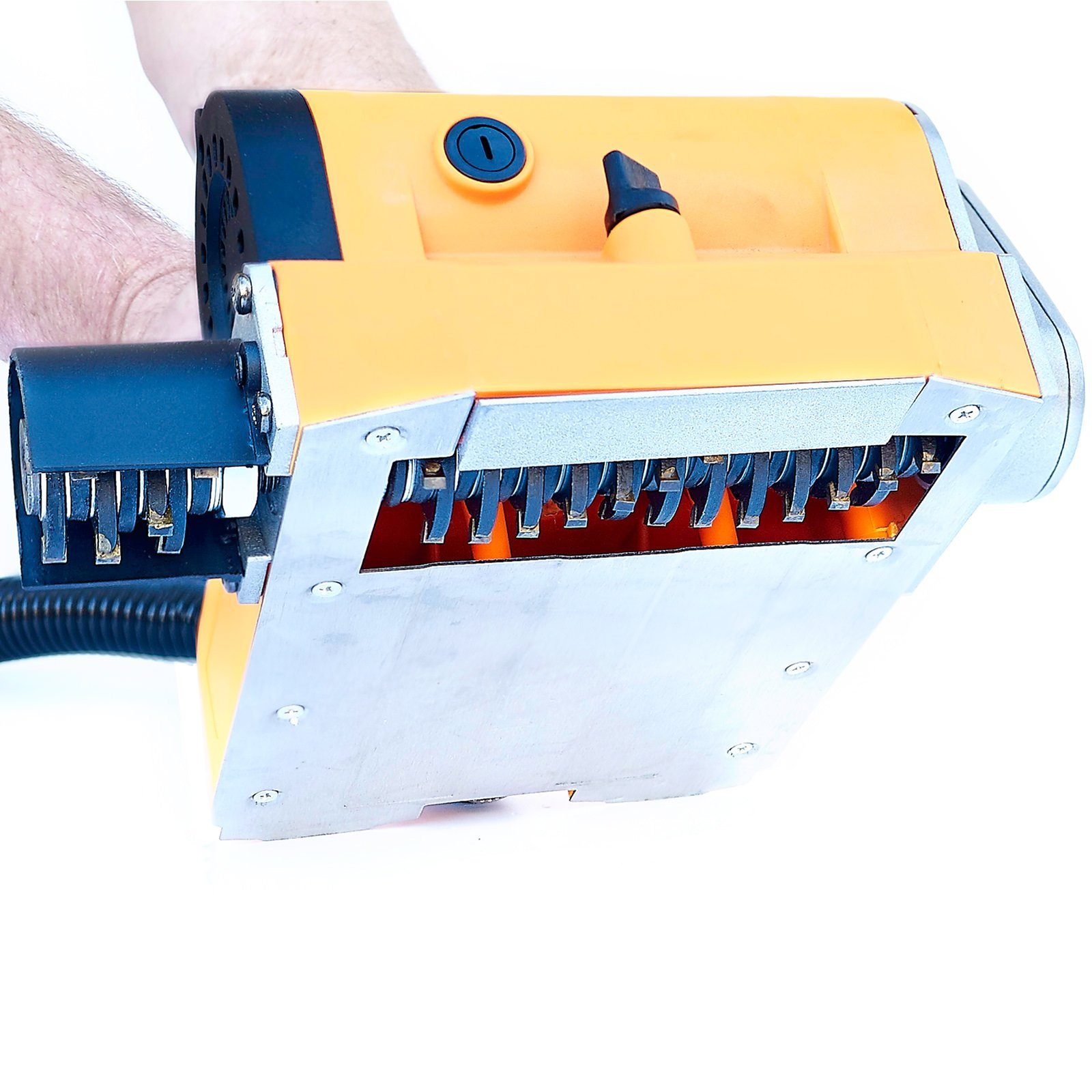 Der Baustaub wird unter den Walzen weiter nach unten abgeleitet. Der im Lieferumfang enthaltene Absaugschlauch mit Anschlussdurchmesser von 35 mm lässt sich an passende marktübliche Industriesauger anschließen. Ein Industriesauger ist bei uns optional erhältlich.
