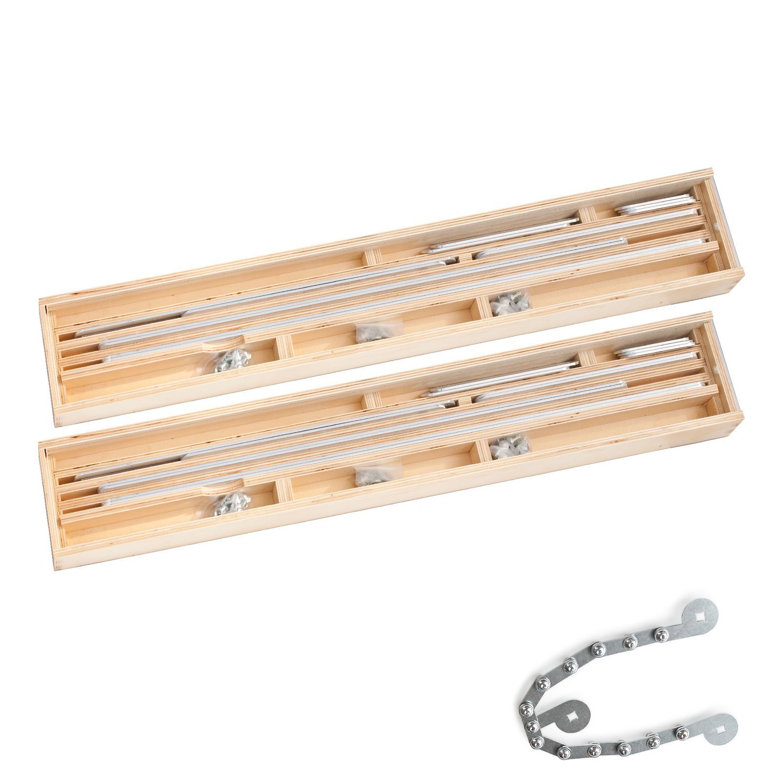 Lieferumfang | PROFI-SET 2· 1 x Element für Rundungen· 26 x Aluschienen bestehend aus· 4 x 800 mm· 4 x 700 mm· 2 x 500 mm· 2 x 350 mm· 4 x 300 mm· 4 x 200 mm· 6 x 100 mm· 6 x Schraubenset· 2 x Koffer |