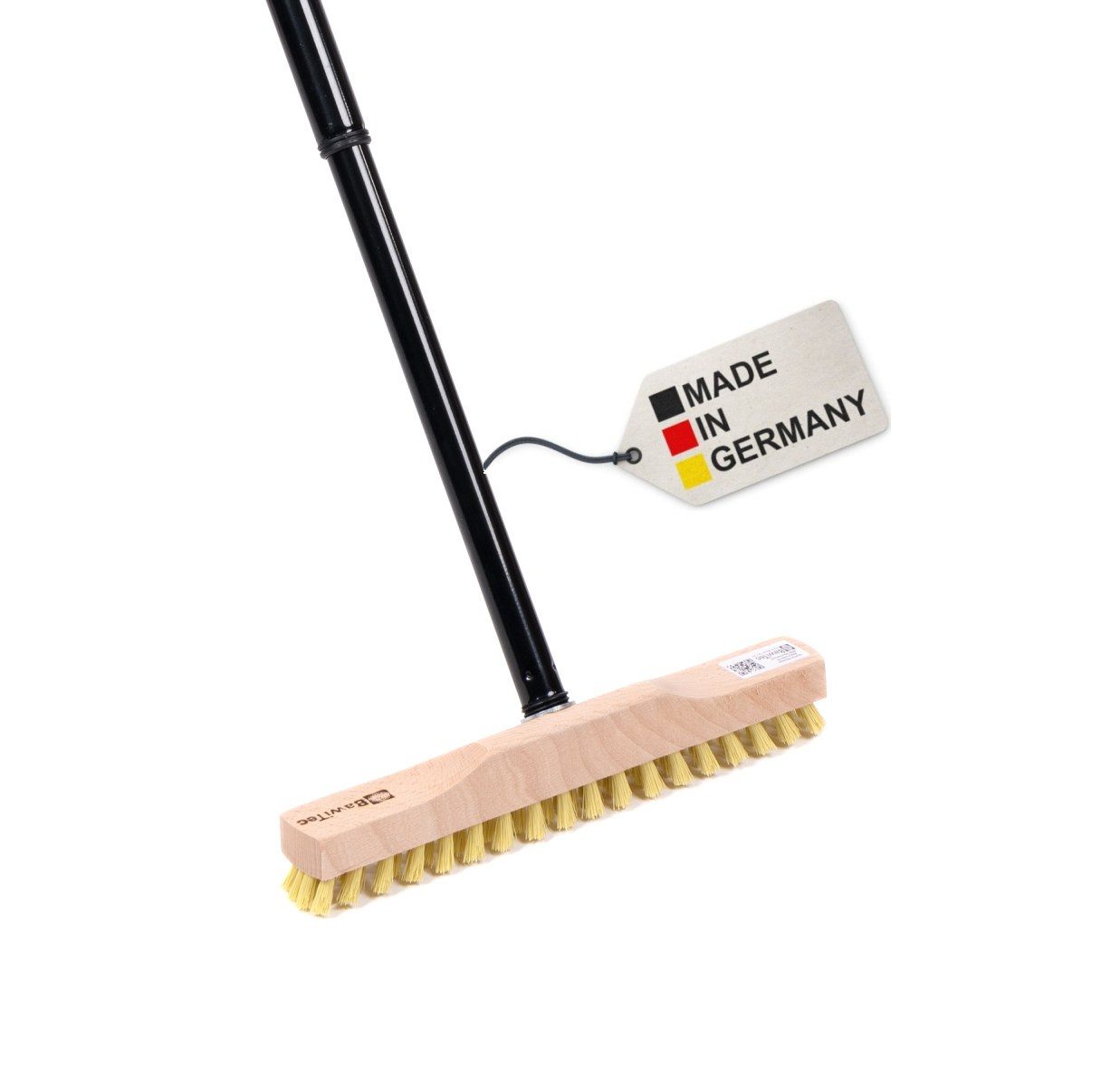 Варианты: Mypren-Kunstfibre-Borsten, Breite ca. 29cm, Abriebfest, wasserfest und temperaturbeständig bis ca. 80°, für mittelharte und grobe Verschmutzungen, inkl. Holzstiel 120cm