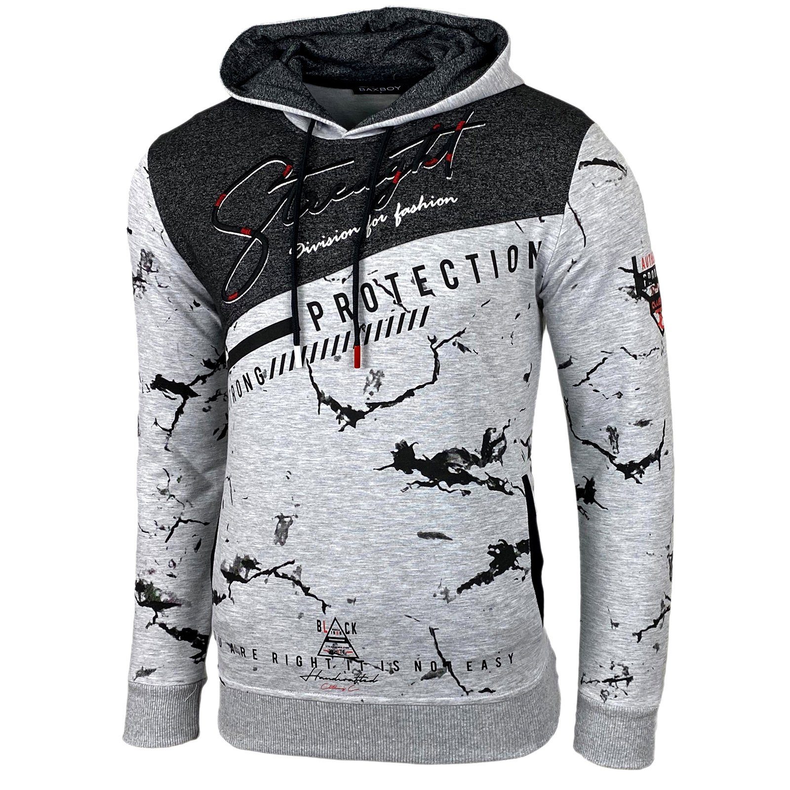 DETAILS & HIGHLIGHTS: Kapuze mit farblich abgesetztem Tunnelzug, weiche Baumwollmischung, kuschelige Fleece-Innenseite, Kängurutasche, Melierte Optik, farblich abgesetzter Frontprint, gerippter und elastischer Abschlussbund sowie Ärmelbündchen.