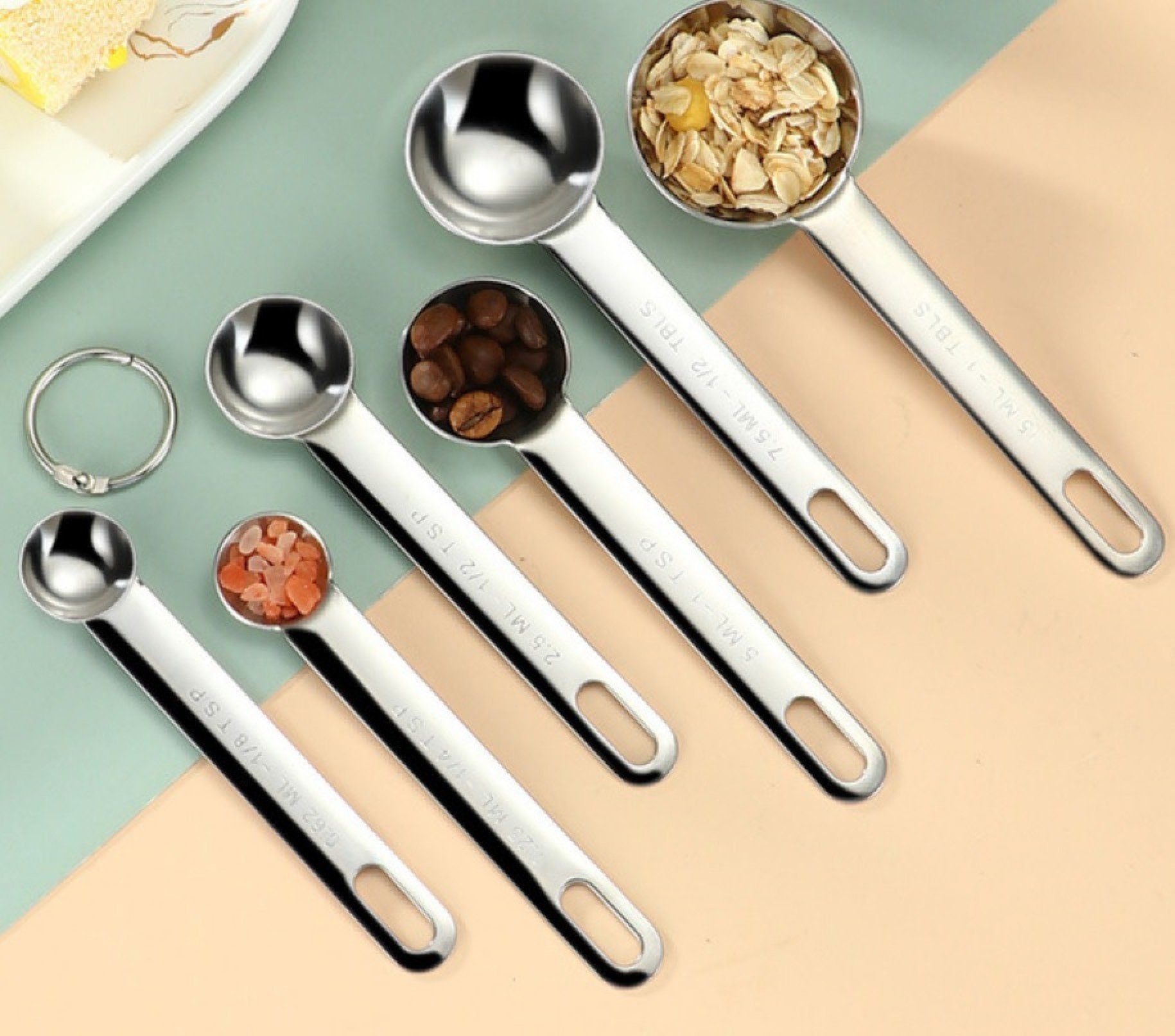 BAYLI Mörser 6 teiliges Messlöffel Set Edelstahl, Dosierlöffel mit Messlineal für