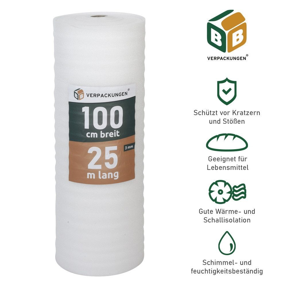 Durch ihre multifunktionale Eigenschaft eignet sich die PE-Schaumfolie sowohl optimal als Verpackungspolster, als auch für die Verwendung als Trittschalldämmung für diverse Böden. Die Dämmunterlage ist für Warmwasserfußbodenheizungen geeignet und beständig gegen Schimmel und Feuchtigkeit. Neben schutzbedürftigen Gegenständen kann sie auch als Versandpolster für Lebensmittel dienen. Durch die geschlossene Zellstruktur ist ein besonders guter Schutz vor Kratzern und Stößen gewährleistet.