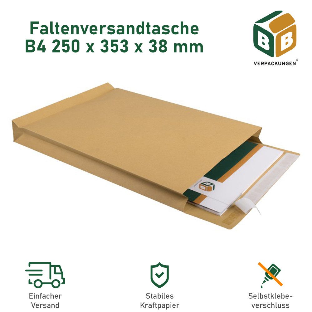 Verschicke deine wichtigen Dokumente einfach und sicher mit unseren Faltenversandtaschen aus stabilem Kraftpapier. Der Selbstklebeverschluss bietet eine einfache Handhabung und garantiert zuverlässigen Verschluss, während ein Schutzband das Austrocknen oder Verstauben des Verschlusses verhindert.
