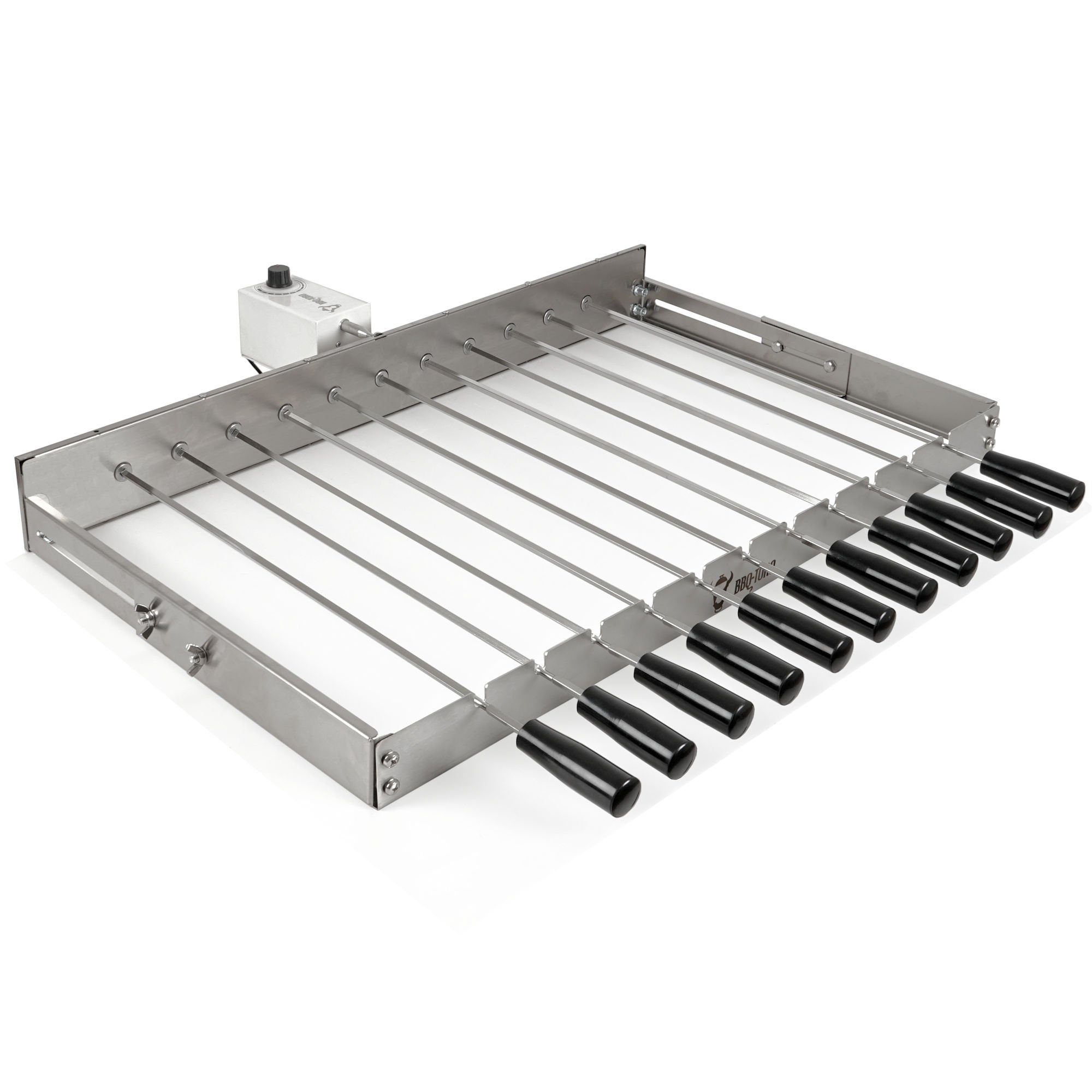 BBQ-Toro Edelstahl Grillaufsatz mit 11 Spießen und Motor hinten mittig | Rahmen größenverstellbar (B) 70 x (T) 26 - 40 cm | elektrisch