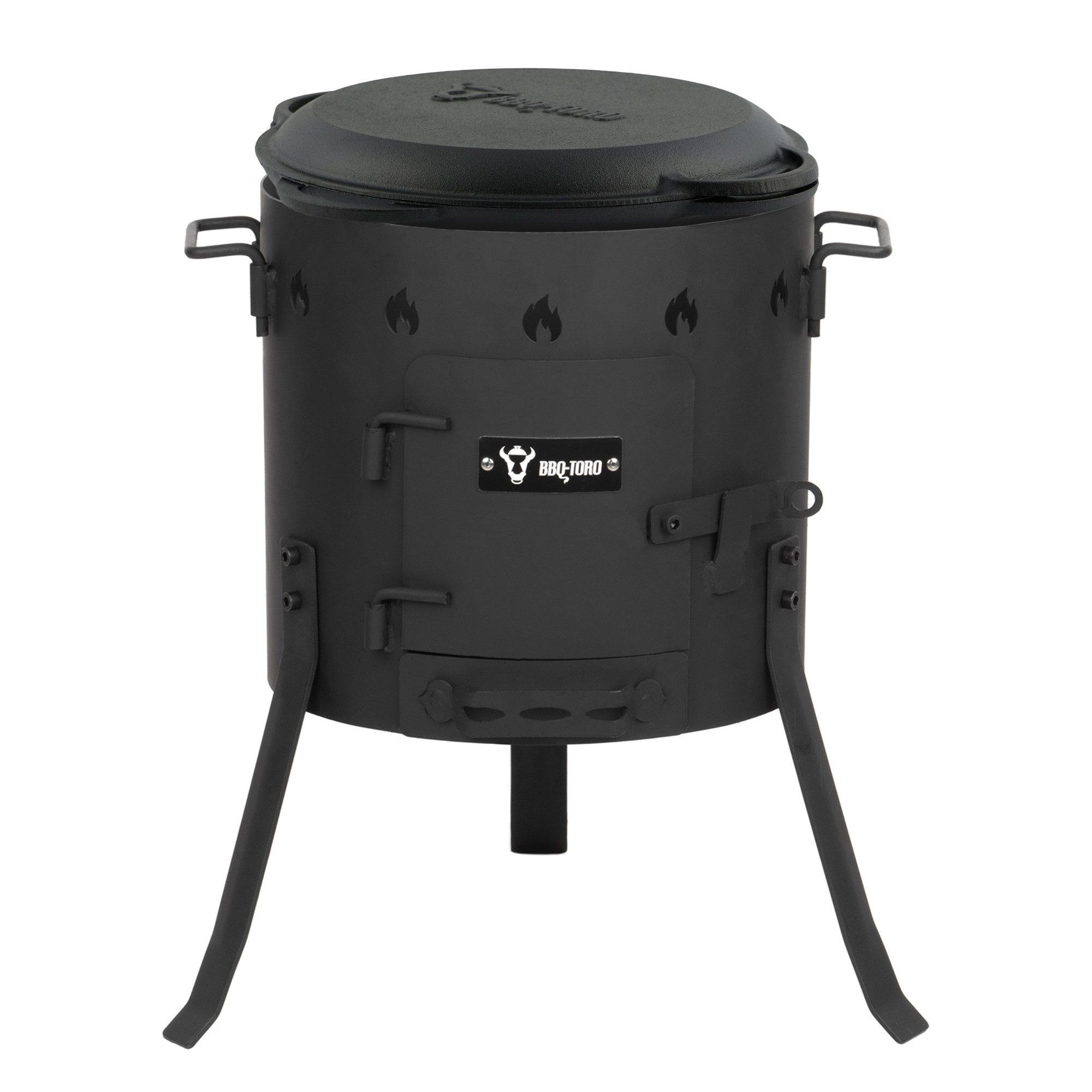 BBQ-Toro Gusseisen Kazan mit Kazan Ofen Ø 35 cm, Gusstopf mit Deckel, Gulaschkessel, Feuerkessel