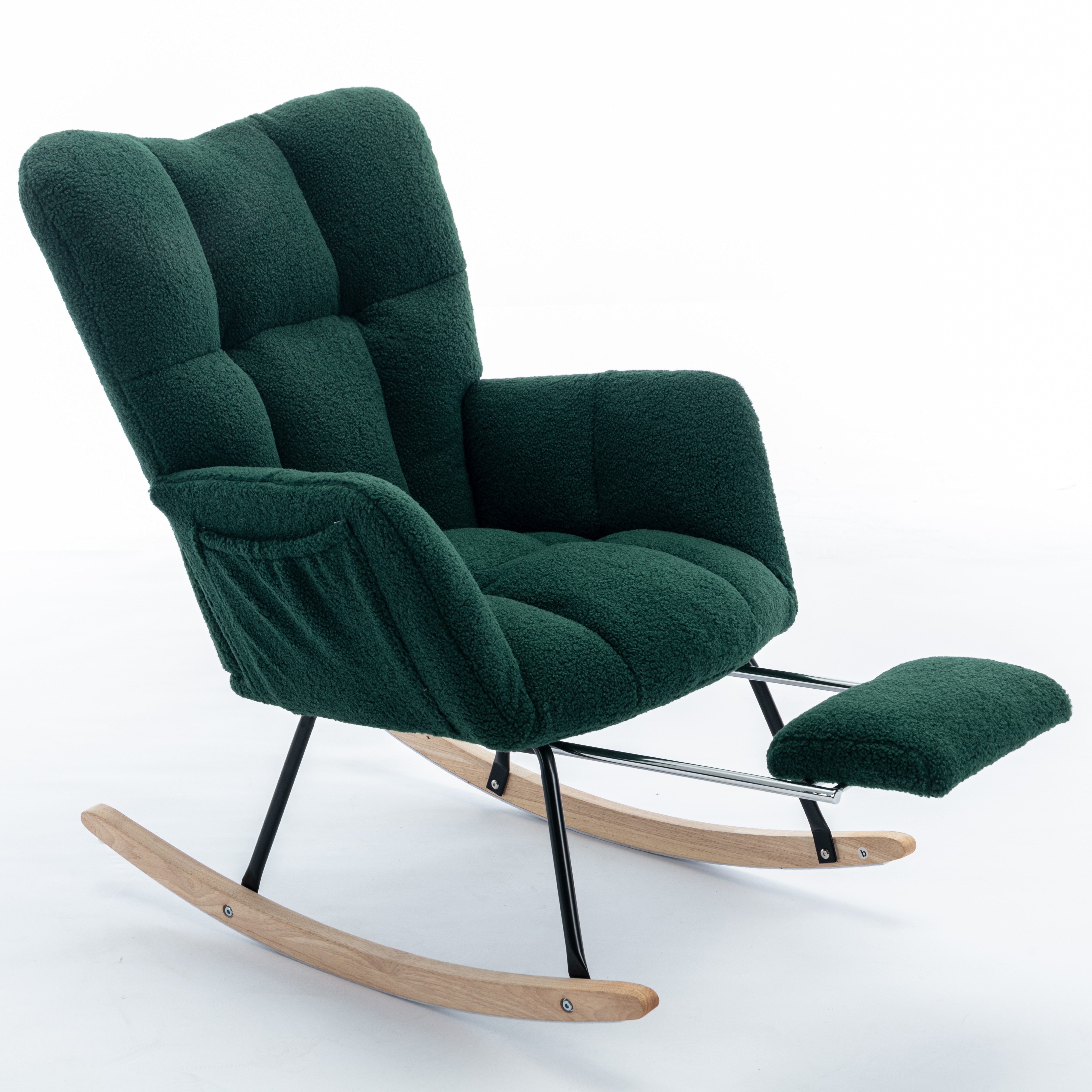 Dieser gepolsterte Schaukelstuhl mit Teddystoff in elegantem Grün kombiniert modernen Wohnkomfort mit cleverem Design. Ob zum Lesen, Entspannen oder Tagträumen: dieser Sessel bringt dir Ruhe und Stil nach Hause.