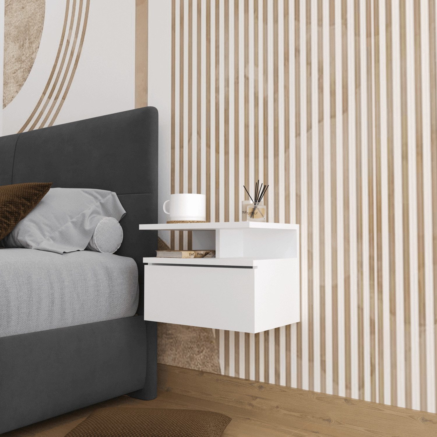Wandmontiert und platzsparend: Das schwebende Design schafft Platz auf dem Boden und sorgt für ein sauberes und offenes Erscheinungsbild, ideal für kleine Schlafzimmer oder kompakte Wohnräume.