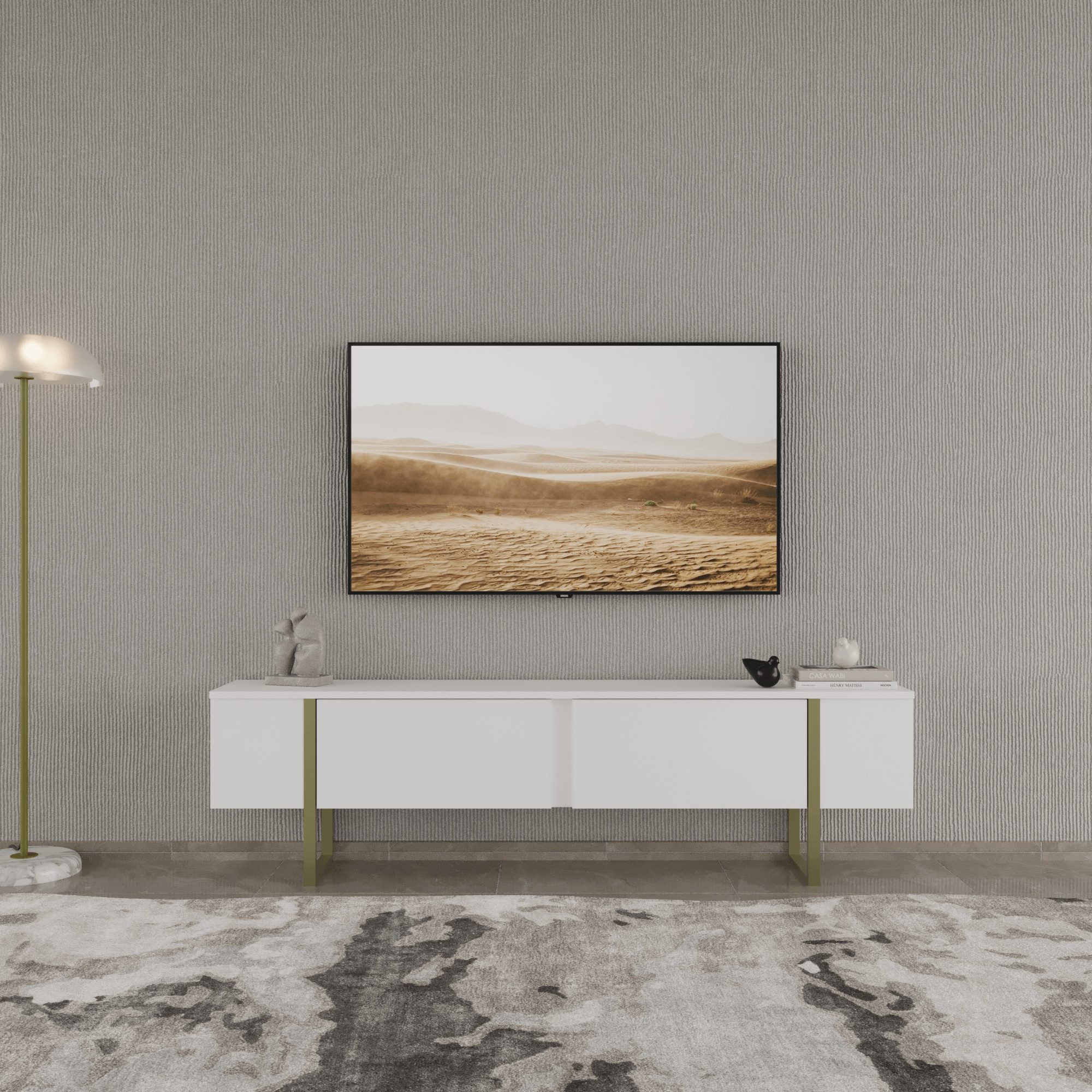 Werten Sie Ihren Unterhaltungsbereich mit dem 2-türigen TV-Ständer mit Metallbeinen von Breda auf – die perfekte Kombination aus modernem Stil, Funktionalität und Haltbarkeit.