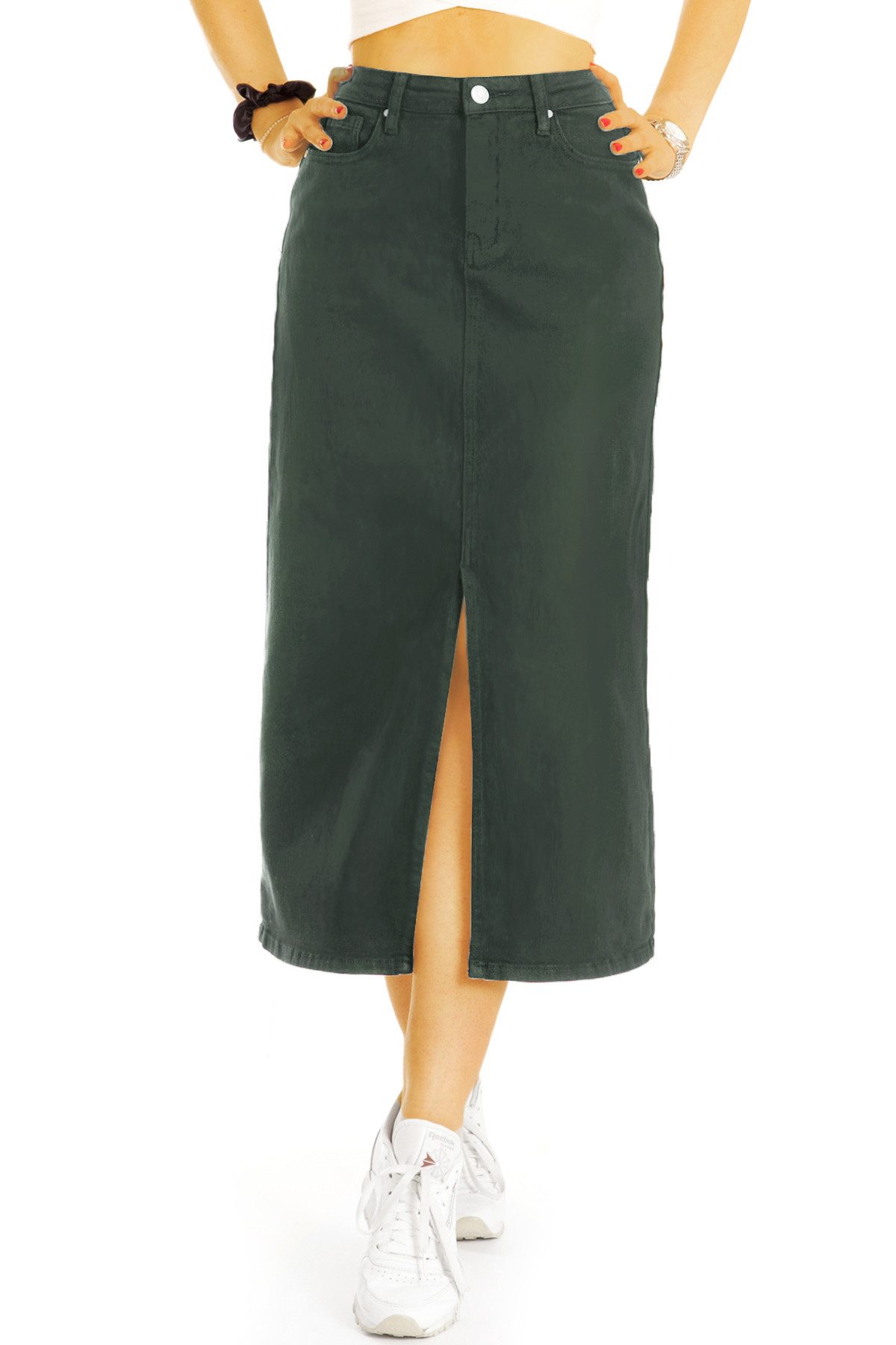 Dieser Pencil Skirt für Damen betont deine Figur und ist dabei super bequem. Der knielange Damenrock wird mit einem Reißverschluss und Knopf geschlossen. Der angesagte Rock in schwarz wird auf Taillenhöhe getragen und liegt somit voll im Trend. Ein Schlitz in der Vorderen Mitte gibt dem bequemen Rock sein besonderes Aussehen und Beinfreiheit beim Laufen. Gemessen bei Размер 36/S hat der elegante Stiftrock für Frauen hat eine Gesamtlänge von ca. 83cm. Der Midirock besteht aus 75% Baumwolle, 22% Polyester und 3% Elasthan. Die Saumweite beträgt ca. 45cm. Erhältlich in den Größen 34/XS, 36/S, 38/M, 40/L, 42/XL erhältlich. Die einfache Ширина пояса beträgt ca. 35cm. Pflegehinweis für den Basic Damenrock in schwarz: Maschinenwäsche 30°. Das Model trägt den angesagten Frauen Rock in der Размер 36/S, bei einer Körpergröße von 175cm, einem Taillenumfang von 59cm und einem Hüftumfang von 89cm. Dieser Midi lange Rock fällt eine Размер größer aus.