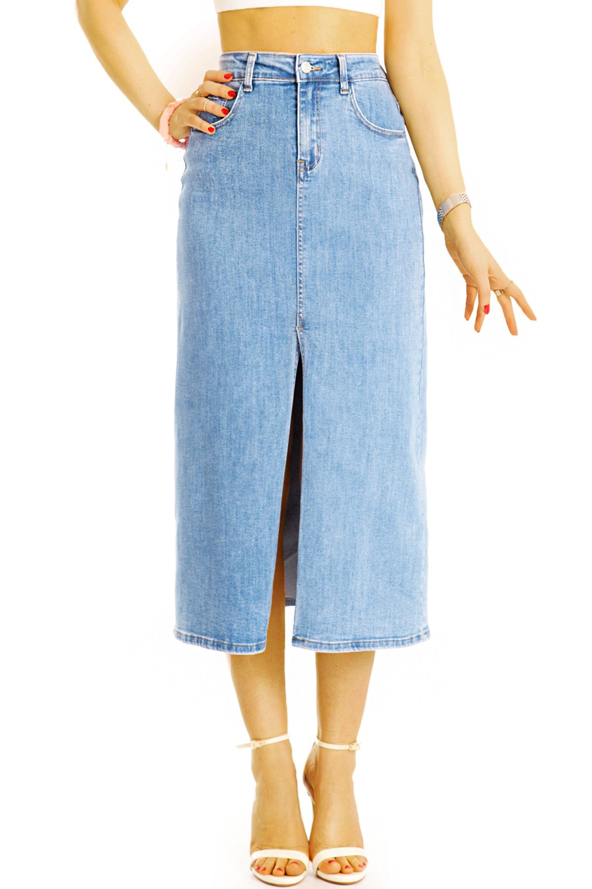 Dieser super bequeme Pencil Skirt für Damen betont deine Figur und macht Spaß zu kombinieren. Der knielange Damenrock wird mit einem Reißverschluss und Knopf geschlossen. Der angesagte Rock in hellem Denim wird auf Taillenhöhe getragen und liegt somit voll im Trend. Ein Schlitz in der vorderen Mitte (ca. 44,5cm vom Saum hoch) gibt dem bequemen Rock sein trendigen Look und Beinfreiheit beim Laufen. Gemessen bei Размер 36/S hat der elegante Stiftrock für Mädchen eine Gesamtlänge von ca. 84cm. Der Midirock besteht aus 75% Baumwolle, 22% Polyester und 3% Elasthan. Die Saumweite beträgt ca. 45cm. Erhältlich ist der klassische Bleistiftrock in den Größen 34/XS, 36/S, 38/M, 40/L, 42/XL. Die einfache Ширина пояса beträgt ca. 35cm. Pflegehinweis für den hellblauen Basic Damenrock: Maschinenwäsche 30°. Ziehe deinen neuen angesagten Damenrock auf die linke Warenseite, so wirst du llänger Freude an der Farbe deines stretchigen Rock haben. Das Model trägt den angesagten Frauen Rock in der Размер 36/S, bei einer Körpergröße von 175cm, einem Taillenumfang von 59cm und einem Hüftumfang von 89cm. Dieser Midi lange Rock fällt eine Размер größer aus.