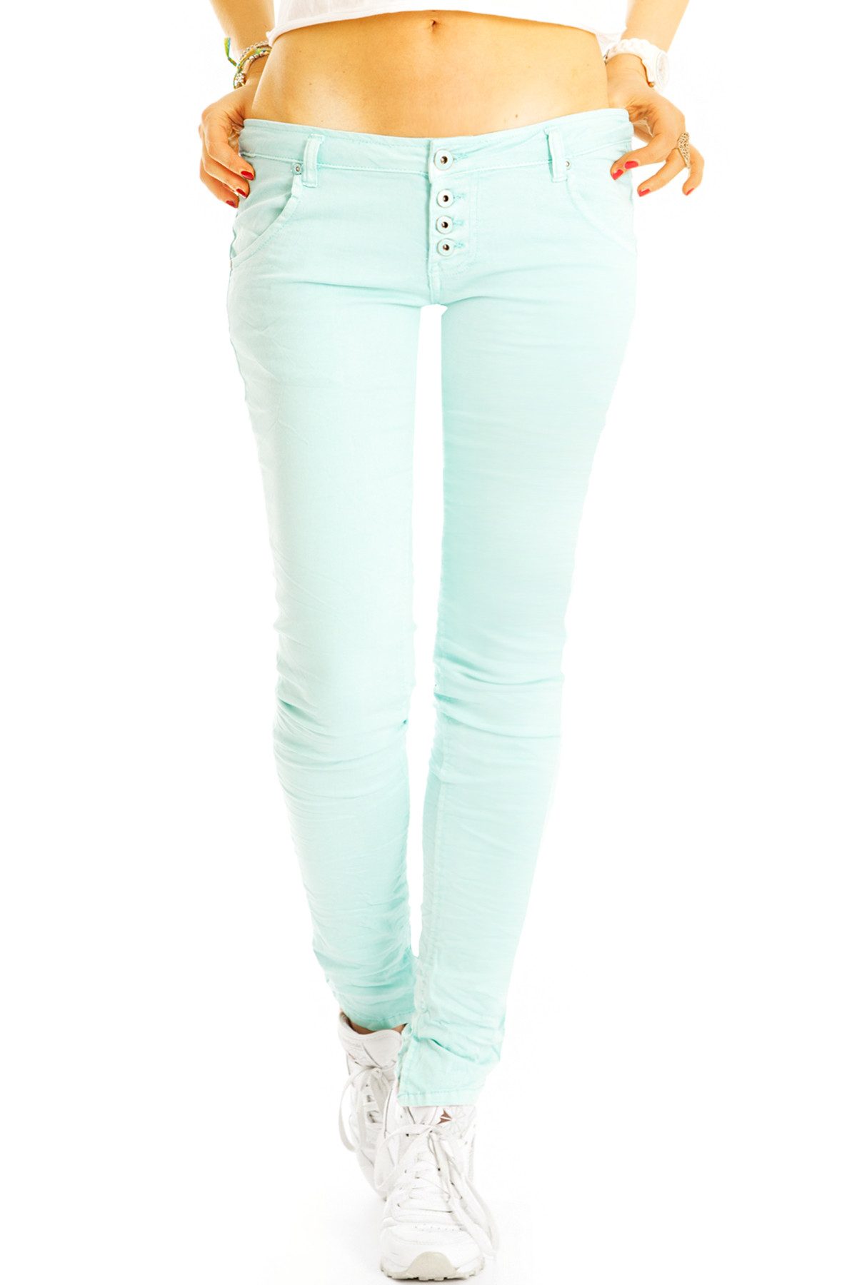 Farbenfroh oder schlicht in den Tag starten - mit dieser hüftigen Damenhose in zwei Farben hast du die Auswahl. Die Skinnyhose mit niedriger Leibhöhe passt sich deiner Silhoutette ideal an. Geschlossen wird die low waist Hose für Frauen mit einer Knopfleiste. Der 5 Pocket Style der Damenhose mit tiefem Sitz untertreicht die Lässigkeit. Der Stretchanteil der low rise Hose für Mädchen sorgt für einen angenehmen bequemen Tragekomfort. Der Materialmix der hüftigen bunten Damen Stoffhose besteht aus 98% Baumwolle und 2% Elasthan. Erhältlich sind die Damen Hosen in 34/XS, 36/S, 38/M, 40/L und 42/XL. Die röhrige Hose für Damen fällt regulär groß aus. Die Slim Fit Hose mit Sitz auf der Hüfte besitzt bei Размер 36/S die folgenden Maßen: Die Innenbeinlänge beträgt ca. 7cm, die Beinbreite unten ca. 15cm , die Beinbreite oben ca. 25cm, die Leibhöhe ca. 18cm und die Ширина пояса ca. 36cm (alles bei Размер 36/S gemessen). Das Model trägt die Размер 36/S, bei einer Körpergröße von 171cm, einem Hüftumfang von 89cm und einem Taillenumfang von 59cm. Wie wir messen: Um für dich die richtige Размер zu finden, legst Du eine deiner Hosen glatt auf eine ebene Fläche. Die Innenbeinlänge misst man von Schritt bis Saum. Bei der Leibhöhe wird der Abstand zwischen Bund und Schritt gemessen. Die Beinbreite oben, misst du am Besten an der breitesten Stelle des Hosenbeins. Die Saumbreite entspricht der Hosenbeinbreite ganz unten. Die Ширина пояса entspricht der einfachen von links nach rechts gemessenen Weite des Hosenbundes. Anschließend vergleichst du die Maße deiner Hose mit denen von uns in der Beschreibung angegebenen Maßen.