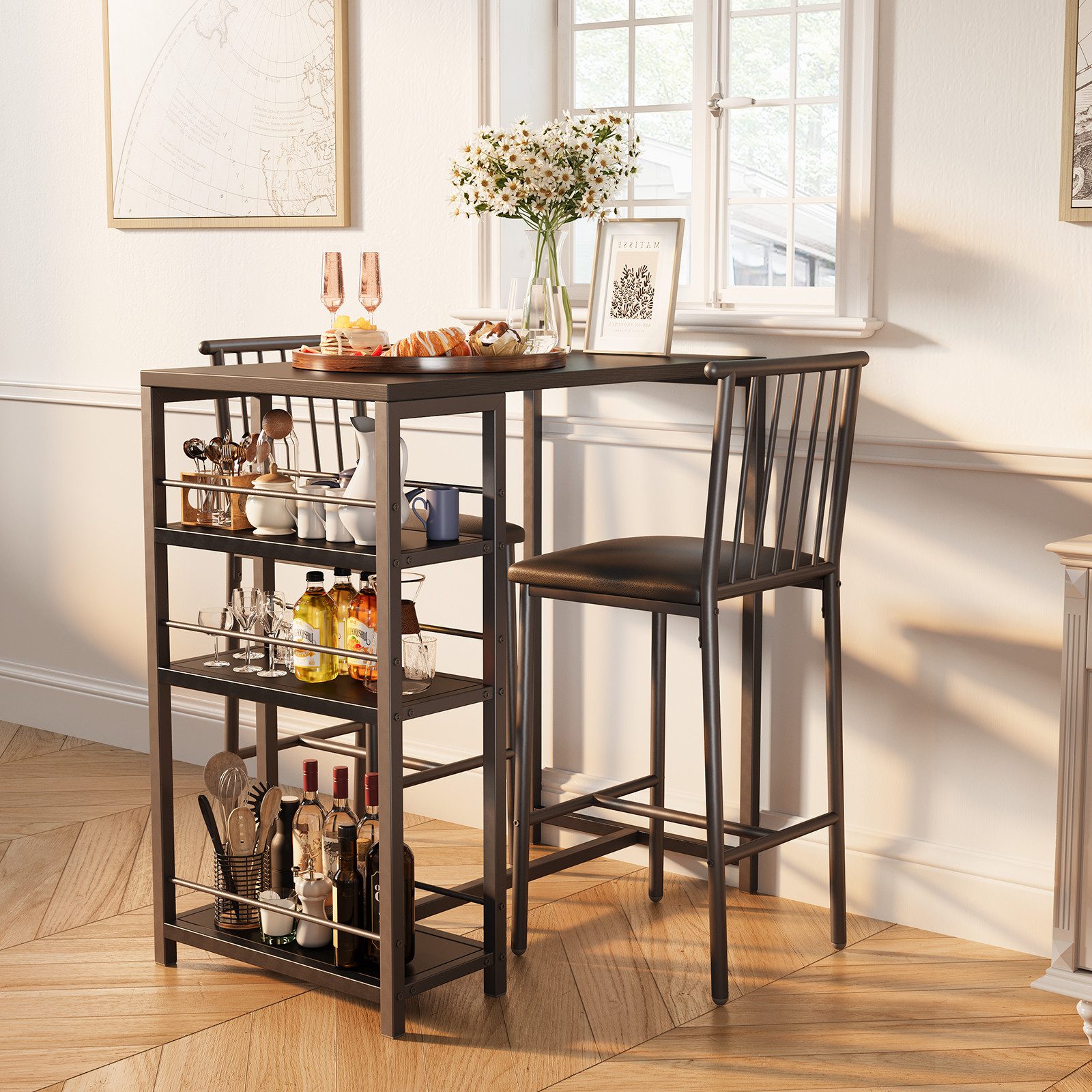 Dieser Bartisch ist eine effiziente und ideale Wahl, wenn Sie zu Hause nur wenig Platz haben, aber eine tolle Zeit verbringen möchten. Stühle können unter dem Tisch verstaut werden, um den gesamten Raum besser zu nutzen. Darüber hinaus verfügt der Bartisch über einen geräumigen Stauraum und ist mit unterschiedlich hohen Ablagefächern ausgestattet, die verschiedene Gegenstände transportieren und das Aufbewahrungsproblem auf einen Schlag lösen können.