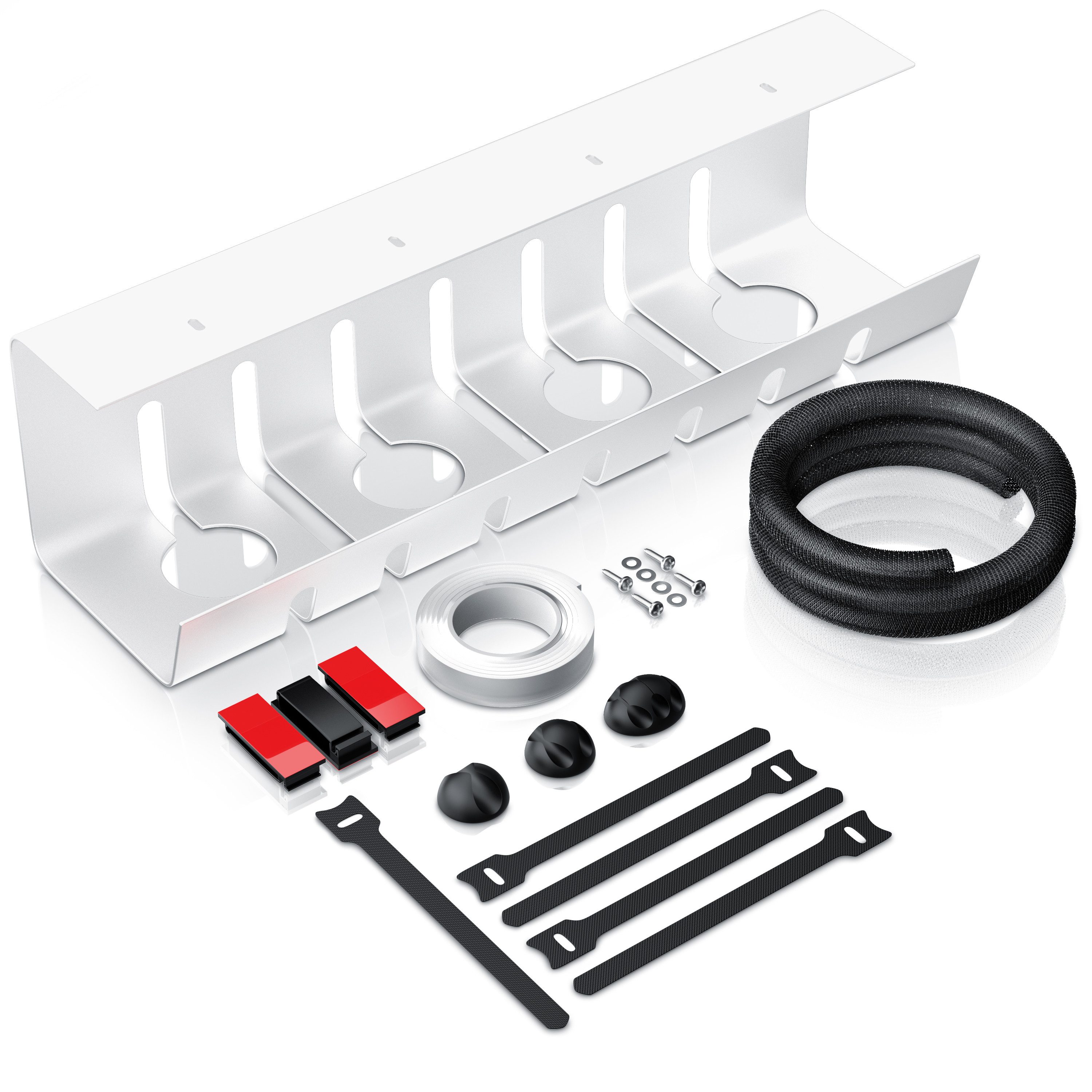Lieferumfang: Kabelkanal plus 5 Klettverschluss-Verbinder, 1m Kabelschauch, 3 Kabelhalterungen, 3 Kabelklemmen