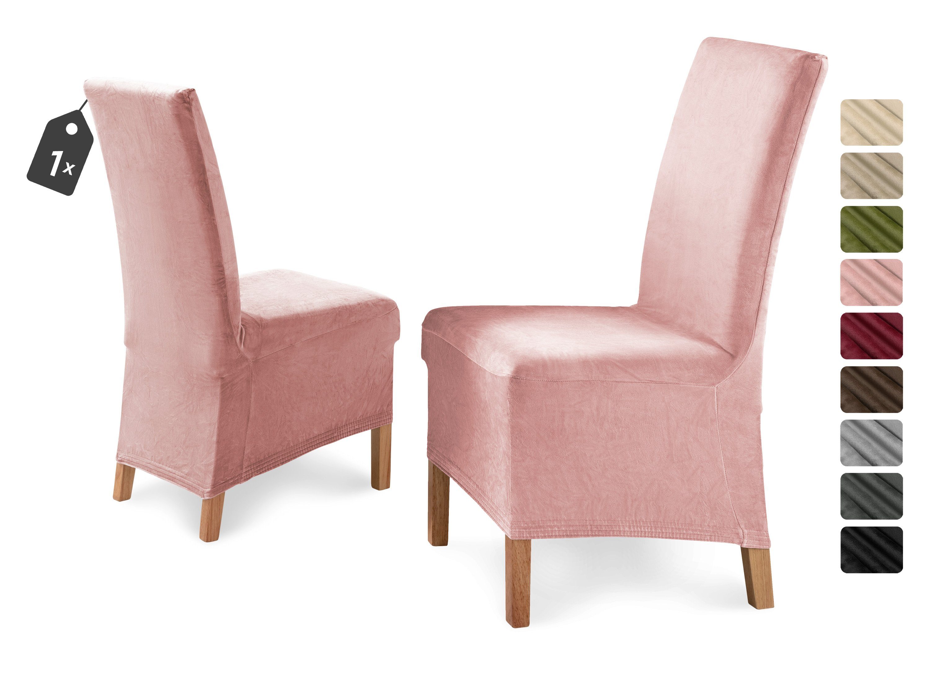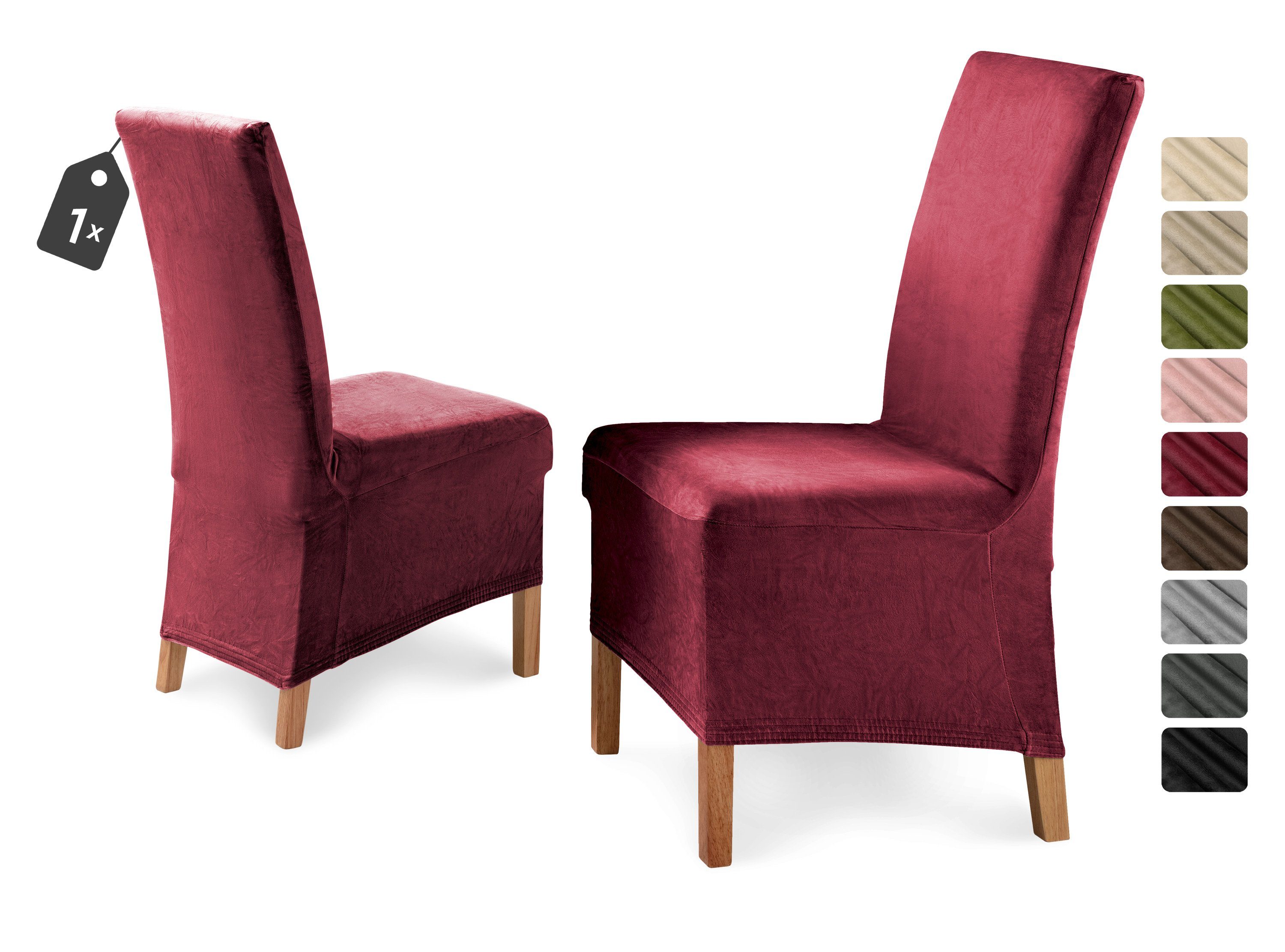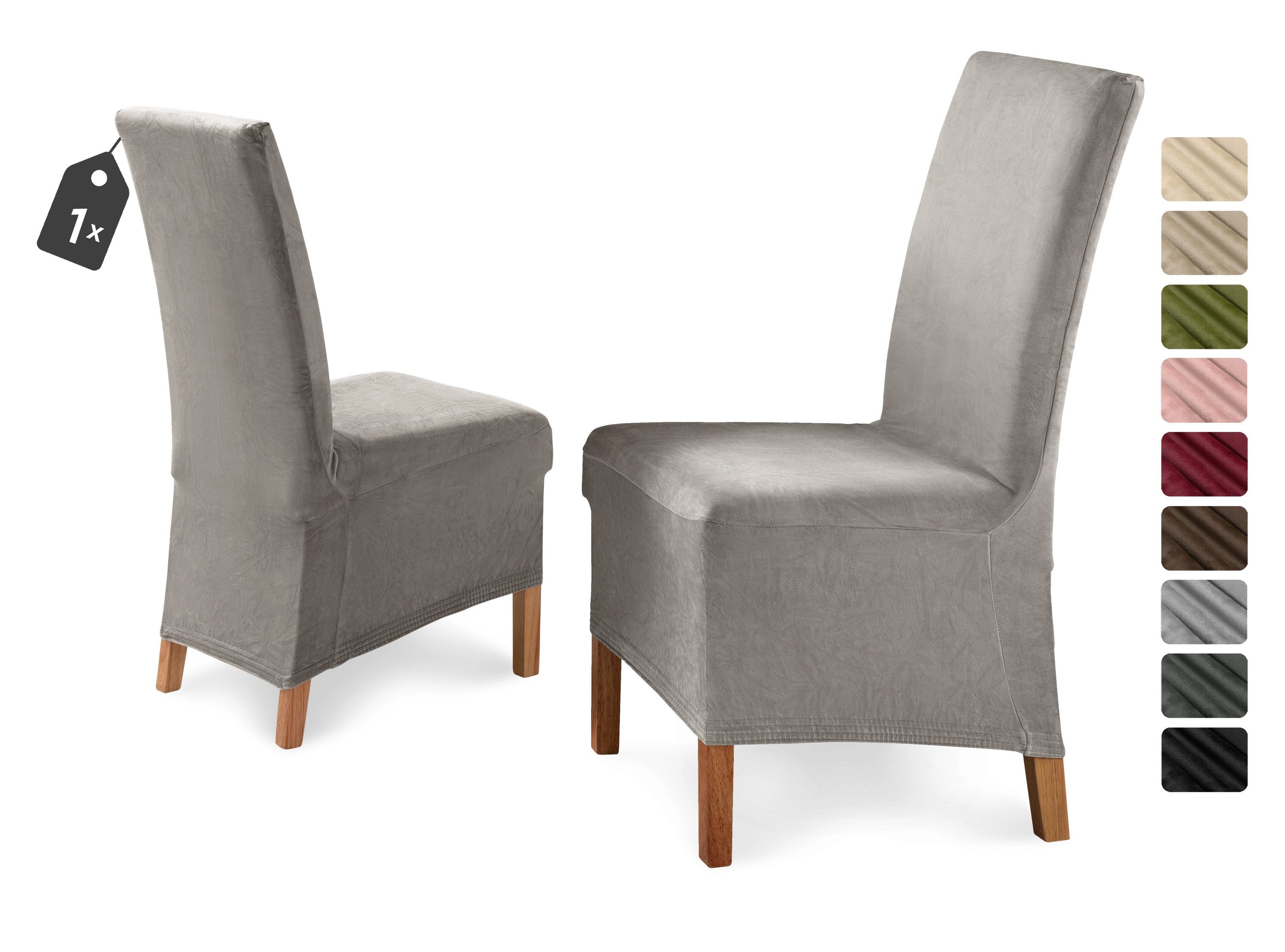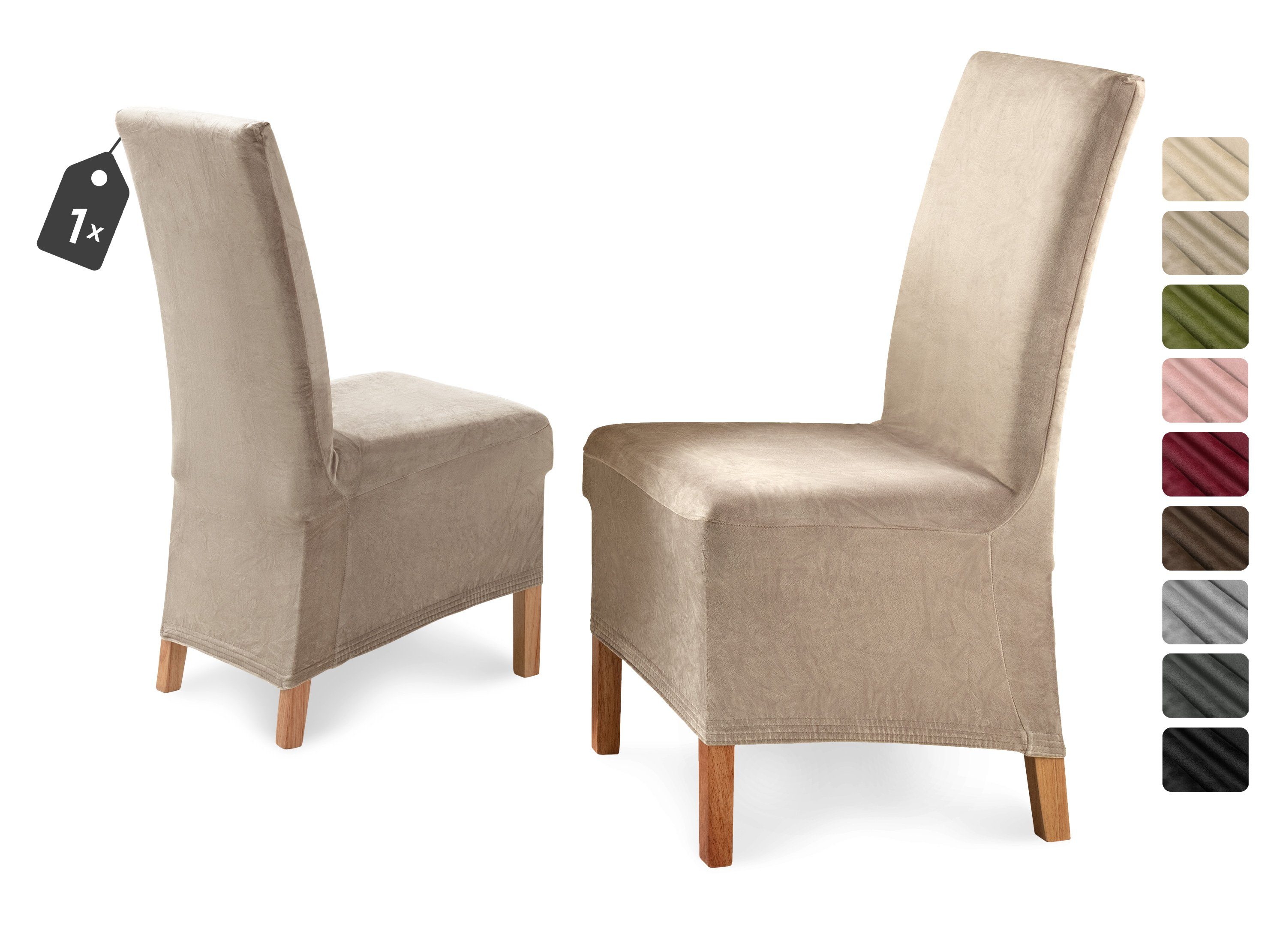 Der samtige Mikrofaser Stoff in wohnlichen Farben und sehr guter Passform machen die lange Stuhlhusse »Eva« aus. Die einfache Handhabung und die sehr gute Passform sprechen besonders für dieses Produkt. Die Stuhlhusse ist in schlichtem uni gehalten, die durch Microfaser Qualität noch einen leichten Glanz und eine samtweiche Oberfläche erhält. Dank des breiten und optisch schönem inwendig eingenähtem Gummizug lässt sich die Husse sehr gut am Stuhl fixieren.
