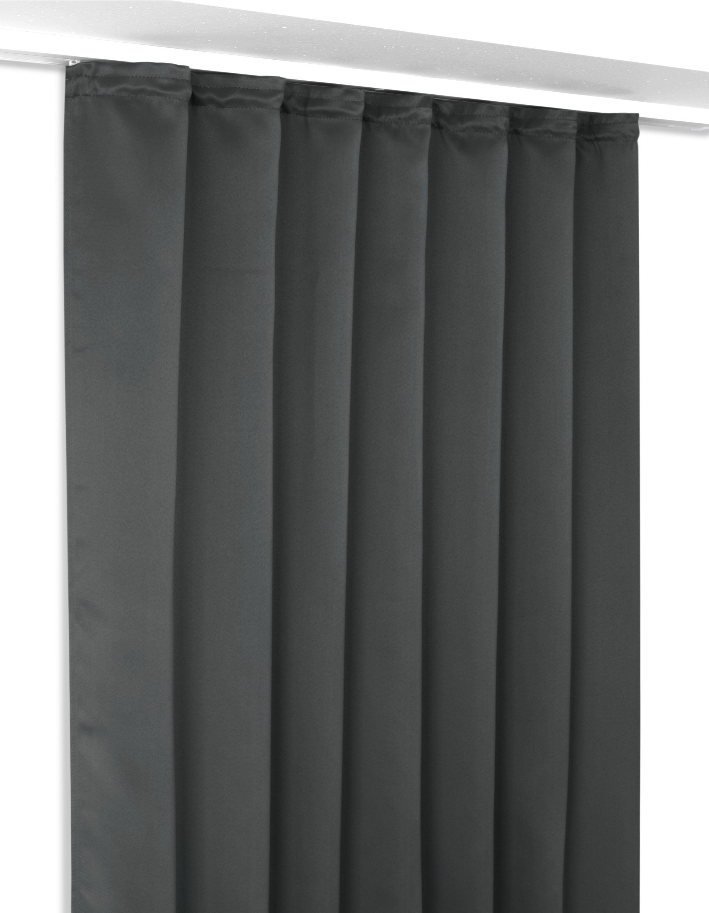 Der Uni Vorhang in der stark abdunkelnden Ausführung besticht mit seinem attraktiven Design, der klaren modernen Linienführung und der komfortablen Ausstattung. Dabei überzeugt der Vorhang nicht einfach nur als Fenstervorhang, sondern wird schnell zum gestalterischen Element für eine stilvolle Raumgestaltung in Wohnräumen, Schlafräumen und Fluren. Als Deko-Element ebenso wie als praktischer Verdunklungsvorhang. Das hochwertige Material kann das Eindringen von Geräuschen im Raum um bis zu 10% reduzieren. Je nach Bedarf wählen Sie einen, zwei oder mehrere Vorhangschals für die Komplettierung Ihrer Fenster, Balkontüren oder Terrassentüren. Entsprechend der Raumhöhe und Gestaltungswünsche können Sie den Vorhang individuell kürzen.