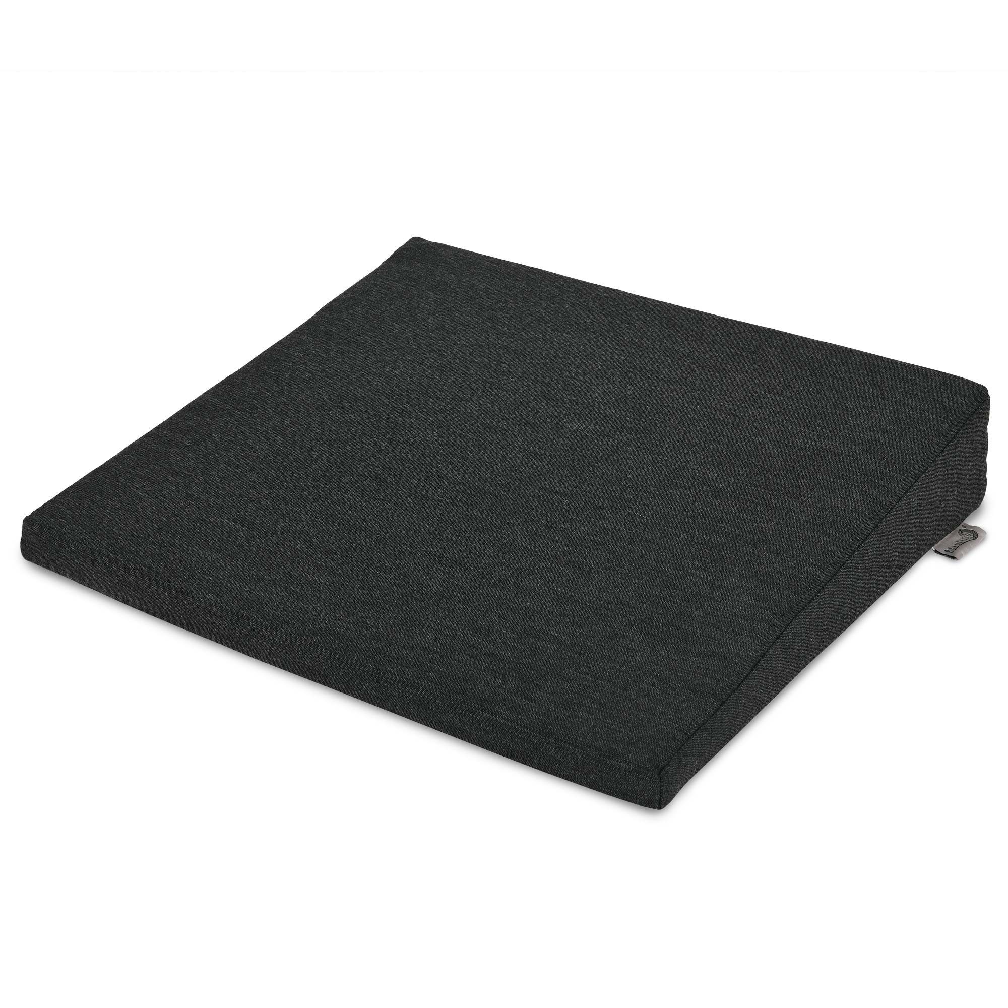Das formstabile Kissen besteht aus hochwertigem Verbundschaum, so dass es sich beim Sitzen nicht zusammendrückt. Auf der Rückseite befindet sich ein Antirutschgewebe und der Bezug ist langlebig und hautfreundlich. Das Sitzkissen ist vorne 2cm hoch und geht keilförmig auf eine Höhe von 7cm. Die Sitzfläche beträgt 37x33,5cm.