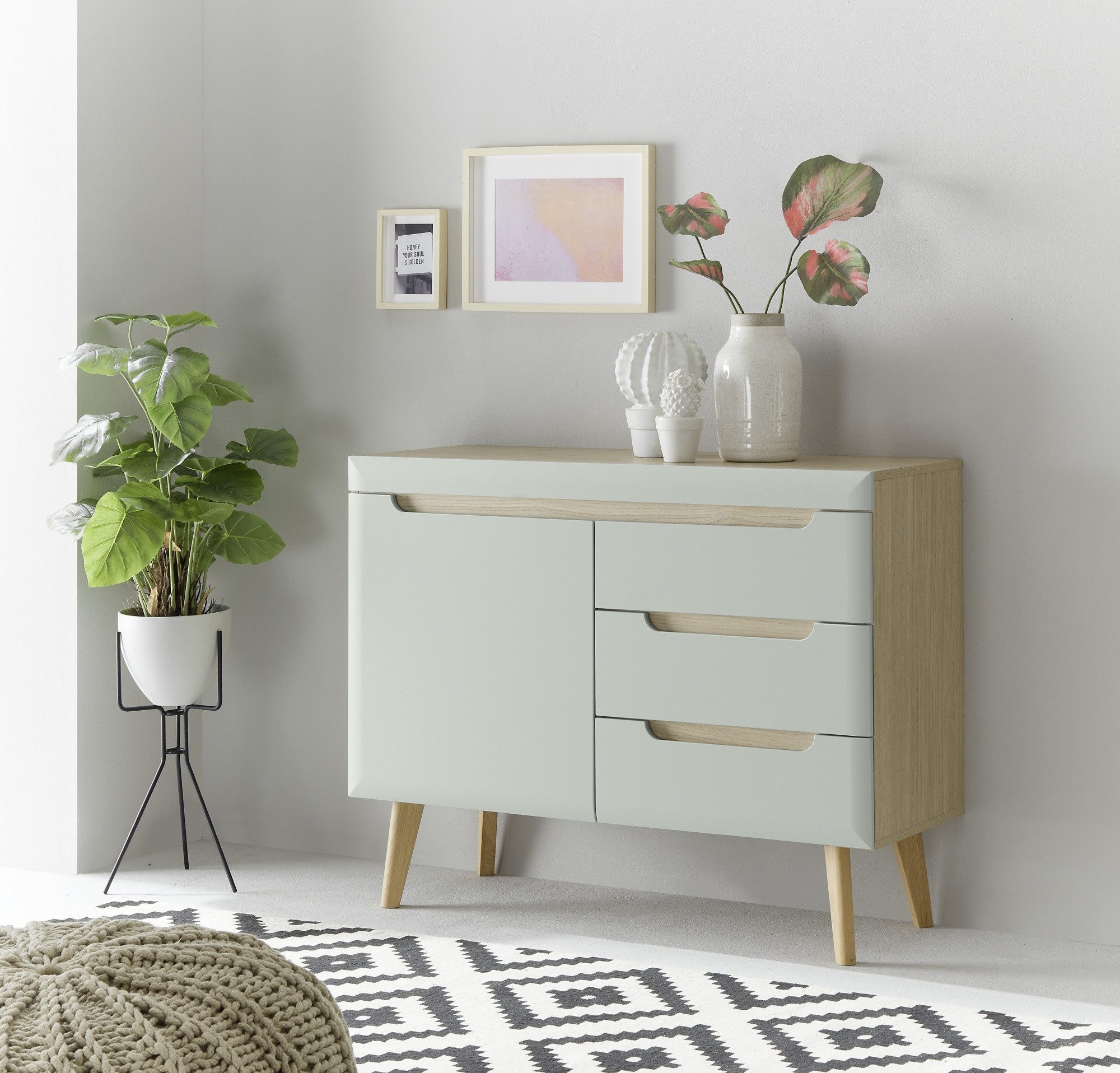 Vielseitigkeit: Ob im Wohnzimmer, Schlafzimmer oder im Flur – das Lowboard "Lumira" passt sich mit seinem minimalistischen Design und den natürlichen Farbtönen jeder Einrichtung mühelos an. Es schafft eine angenehme, skandinavische Atmosphäre und bietet gleichzeitig eine praktische Lösung für Ihre Aufbewahrungsbedürfnisse.